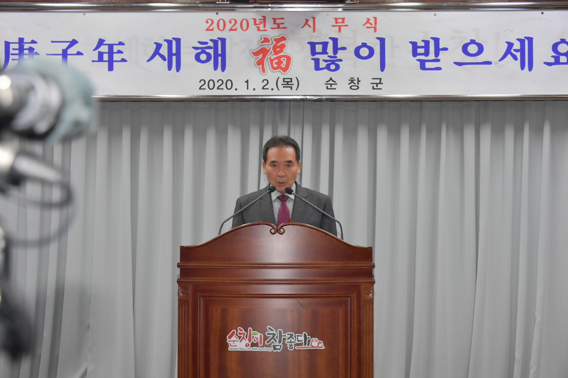 - 황숙주 순창군수는 2일 군청 회의실에서 300여명의 직원들이 참석한 가운데 순창군 시무식을 갖고 새해 순창비전을 제시하며 힘찬 출발을 다짐했다. 이날 황군수는 “올해는 `군민보다 먼저 근심하고, 나중에 즐긴다`는 선우후락(先憂後樂)의 자세로 군민의 행복과 군정 발전을 최우선 과제로 삼고 시대 변화에 발맞춰 정진해 나가겠다”라고 다짐했다. -2020년 1월 2일-