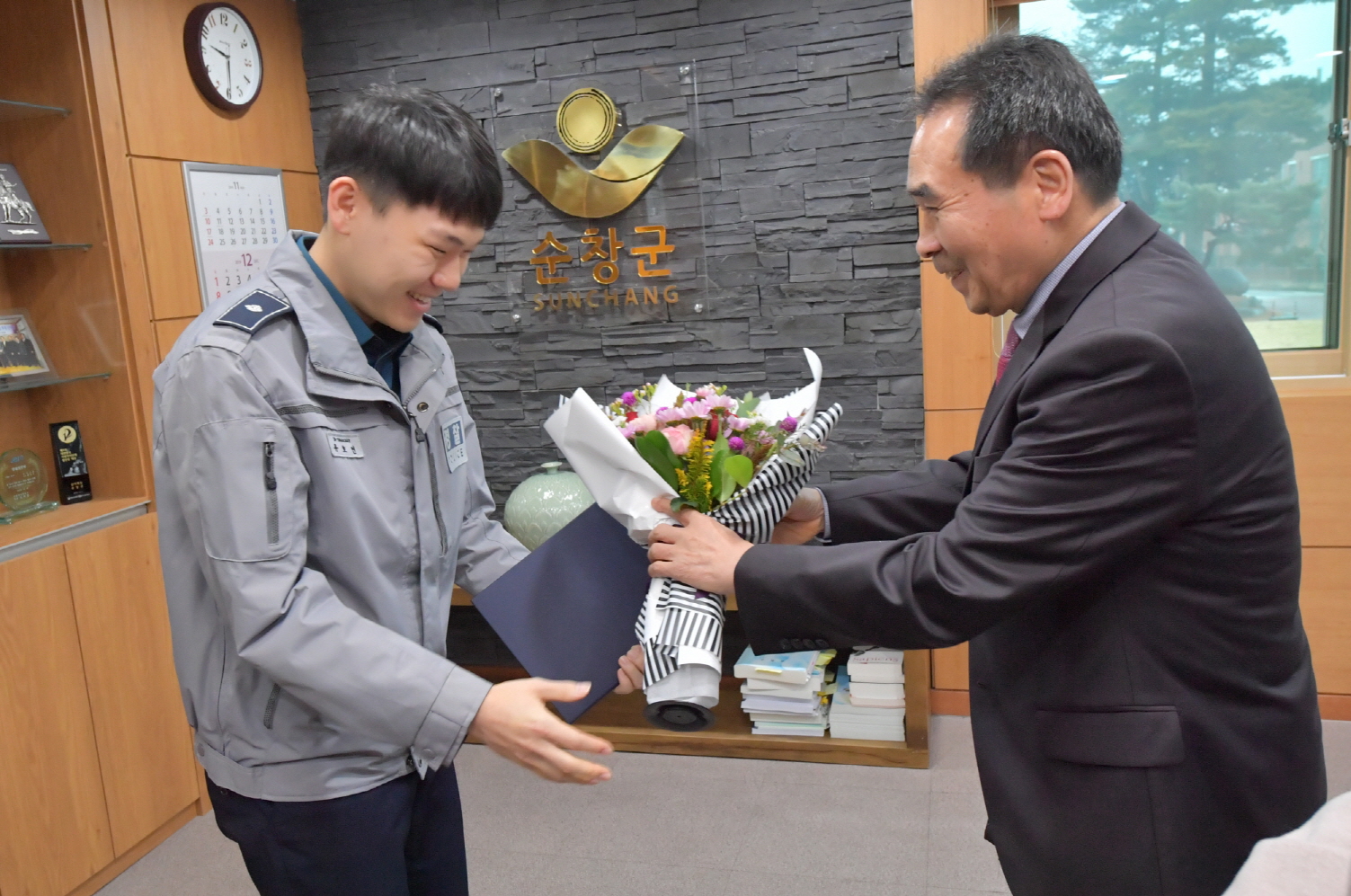 - 30일 2019년 연말을 맞아 드림스타트 사업인 `꿈나무 공부방`에서 아이들을 위해 봉사를 펼친 유호연 의무경찰에게 황숙주 순창군수가 표창장을 수여했다.순창경찰서에 근무중인 유호연(21세) 의무경찰은 전북 전주 출생으로 건국대학교 물리학과에 재학중이며, 2019년 드림스타트 사업인 `꿈나무 공부방`에서 인지 및 언어분야의 위기아동들에게 맞춤 학습 지도와 아이들의 고민 상담까지 해주었다. -2019년 12월 30일-