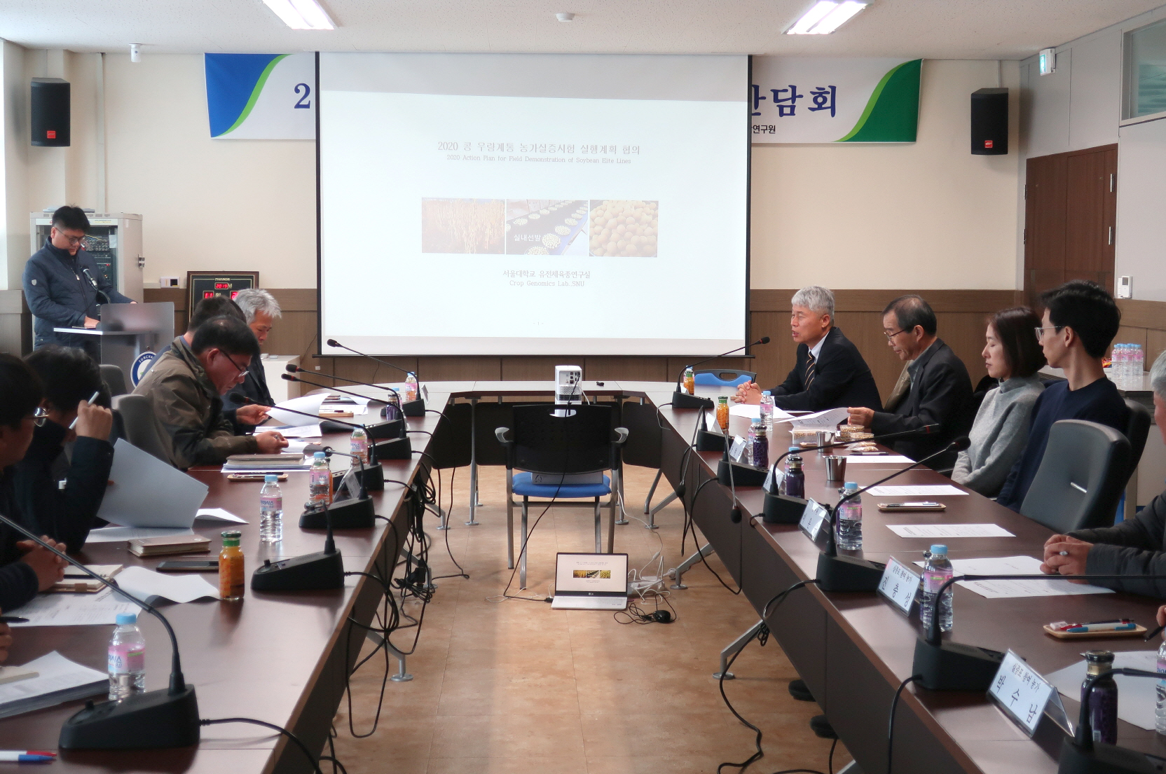 - 순창군이 장류 원료인 순창 콩, 고추 품종을 개발에 힘을 쏟고 있는 가운데 26일 서울대 이석하 원장외 3명 등 총 20여명이 참석해 순창 콩 개발을 위한 간담회가 열렸다. 메주콩 개발이 완료되면 연이어 녹두, 팥 품종 개발에도 나설 예정이다. -2019년 11월 26일-