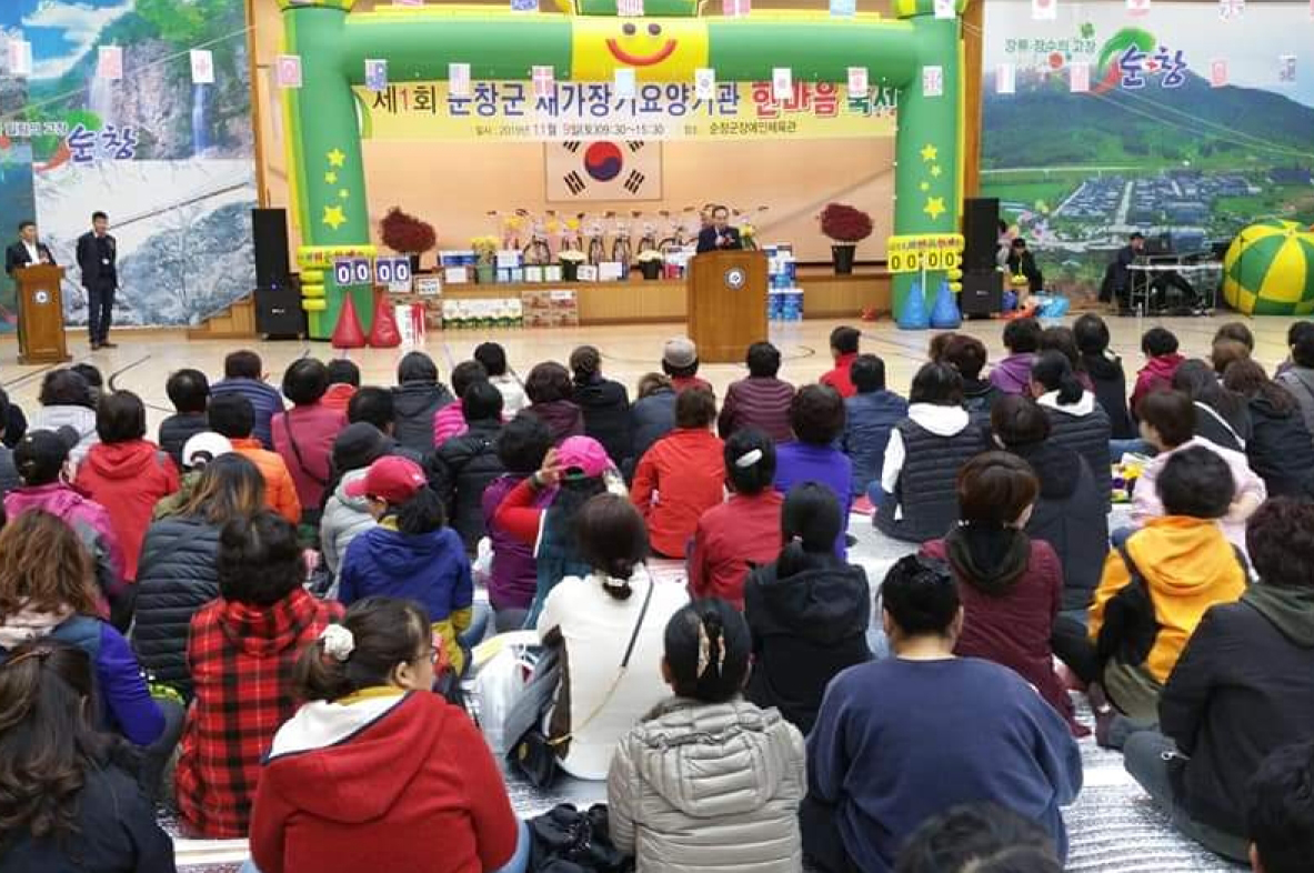 - 순창군 재가장기요양기관 한마음 축제가 9일 장애인체육관에서 관내 장기요양기관 요양보호사 300여명이 참석한 가운데 열렸다.이날 행사는 순창군 재가장기요양기관 협의회(회장 박수복) 주관으로 재가장기요양기관 간 상호협력 및 우호증진과 지역 어르신들을 돌보고 있는 요양보호사들의 사기진작과 자부심 제고를 위해 마련됐다. -2019년 11월 11일-