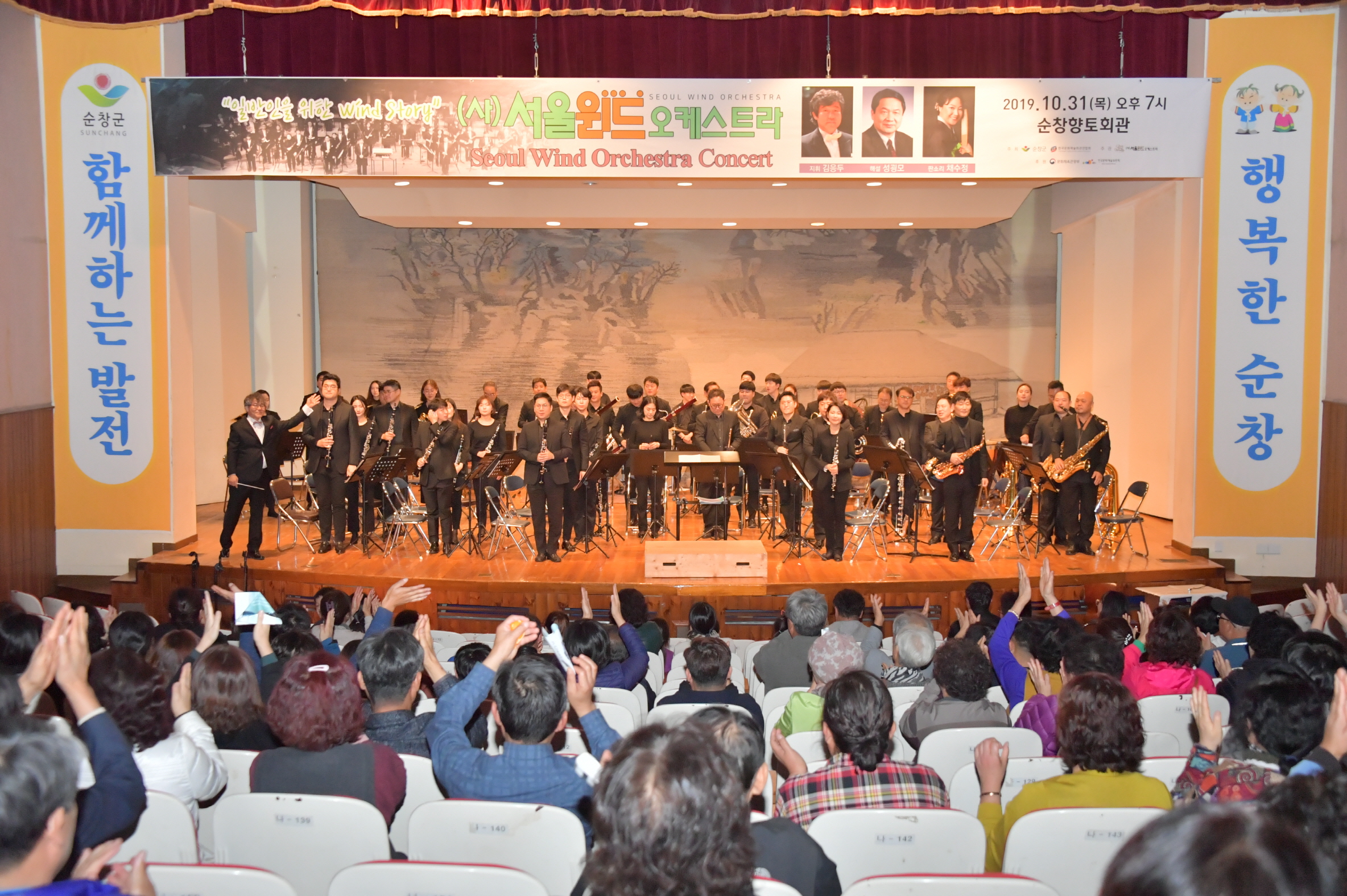 - 31일(목) 저녁 7시 순창향토회관에서 관악 공연 `서울윈드앙상블의 일반인을 위한 Wind story`와 11월 5일(화) 오후 3시와 7시 30분 연극 ‘만선’을 군민들에게 선보였다. 10월의 마지막 날에 선보이는 `서울윈드앙상블의 일반인을 위한 Wind story` 공연은 순창군이 한국문화예술회관연합회가 주관하는 방방곡곡문화공감사업에 선정됨에 따라, 문화가 있는 날 주간에 열리게 됐다. -2019년 10월 31일-