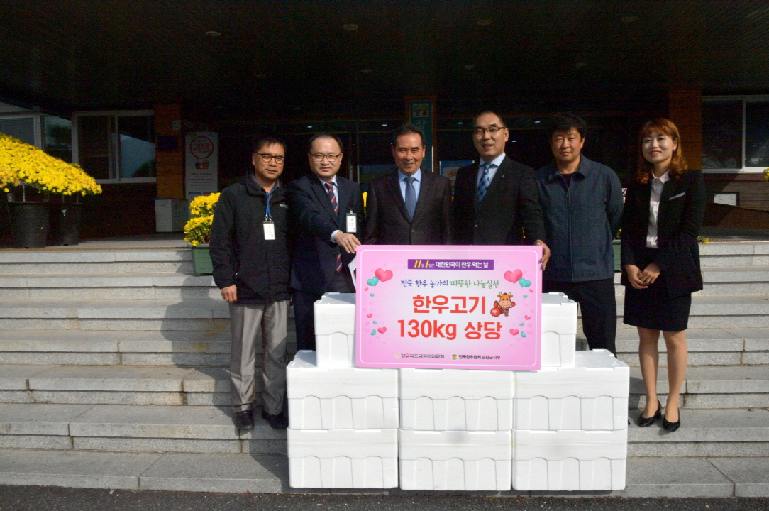 - 순창한우협회(지부장 이양훈)는 1일 순창군을 방문하여 소고기 130kg (430만원 상당)를 기탁했다. 물품은 경로당과 생활 형편이 어려운 수급자분들을 위해 전달했으며, 기력 보충에 작은 도움이 될 것으로 군은 기대하고 있다. -2019년 11월 1일-