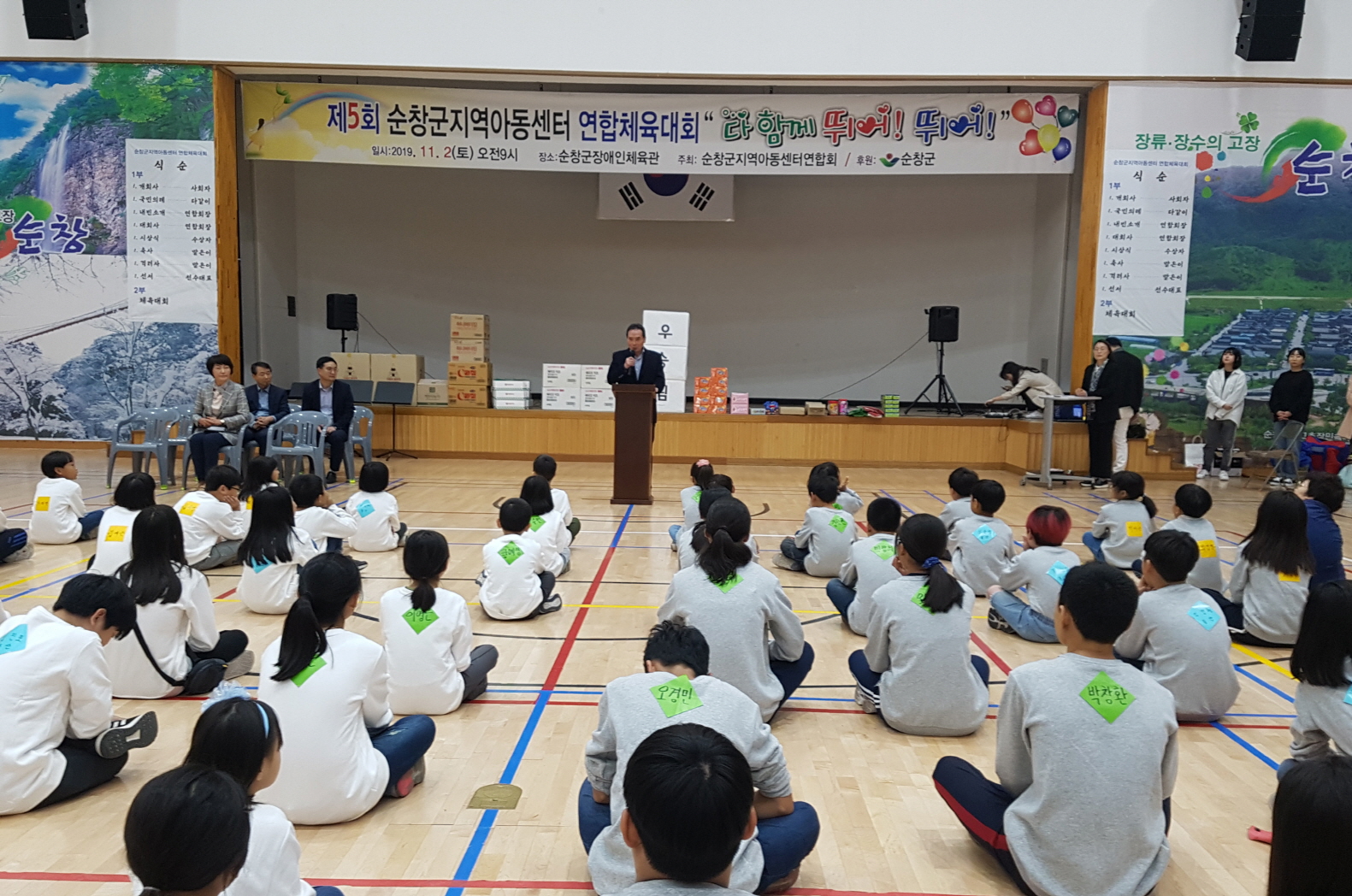 - `다함께 뛰어! 뛰어!` 순창군 지역아동센터 연합체육대회가 2일 순창군 장애인 체육관에서 성황리에 열렸다.3곳의 지역아동센터가 참여한 이번 체육대회는 지역아동센터를 이용하는 아이들에게 건강한 신체활동과 가족화합의 기회제공을 통한 소속감과 자존감 향상을 위해 2015년부터 매년 진행되고 있다. -2019년 11월 3일-