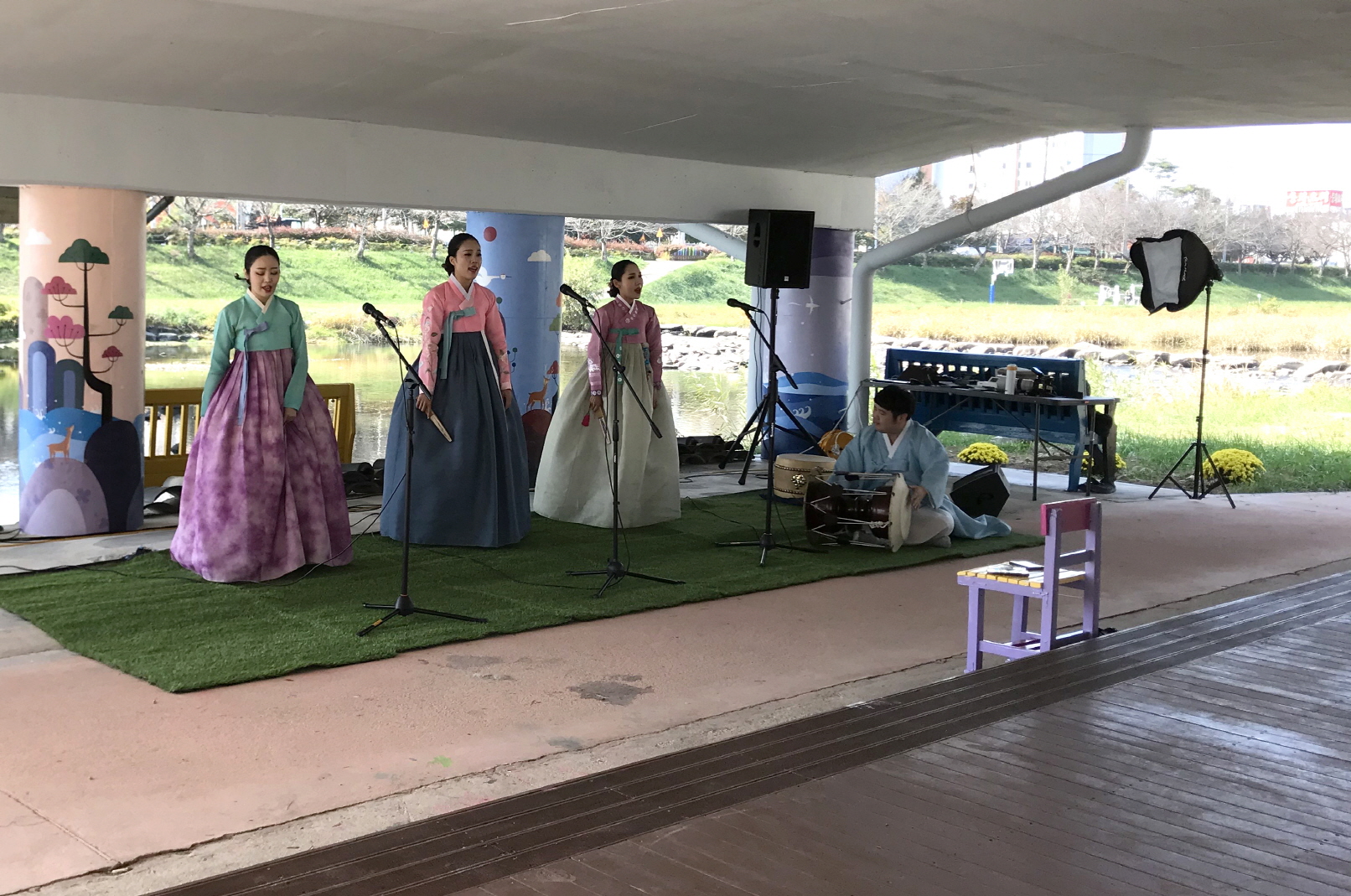 - 순창군은 지난 9월부터 두 달간에 걸쳐 새희망근로 지원사업의 일환으로 장수교 교각 벽화작업과 환경정화작업을 주축으로 하는 `행복한 다리 프로젝트`를 진행했다. 이 사업으로 교각은 장수와 건강을 기원하는 십장생으로, 노후화된 의자와 평상은 리폼을 통해 새롭게 바뀌었다.3일 문화공간으로 탈바꿈한 장수교 밑에서 문화예술진흥기금 사업인 “신나는 예술여행”이라는 이름으로 문화행사를 가졌다. -2019년 11월 3일-