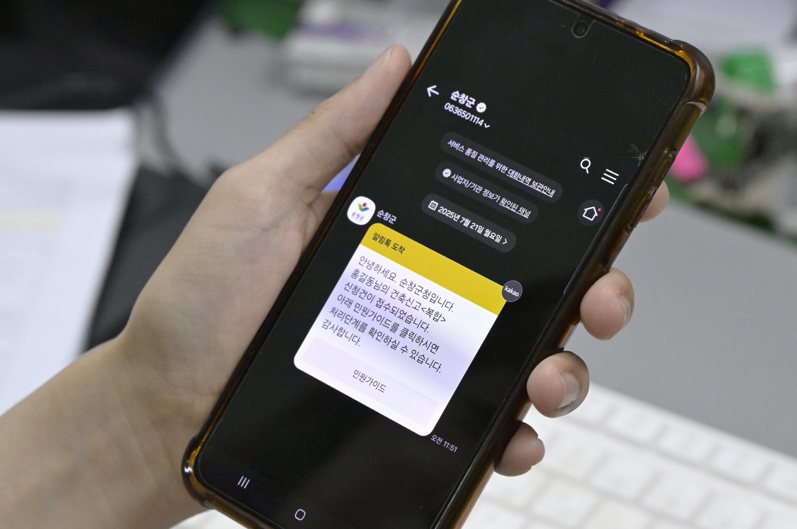- 순창군은 7월 28일부터 민원인에게 보다 상세한 민원처리 상황을 제공하기 위해‘스마트 민원처리 알림 메시징 시스템’을 시범 운영한다. ‘스마트 민원처리 알림 메시징 시스템’은 새올행정시스템과 연계되어 처리기한이 2일 이상인 모든 유기한 법정 민원을 대상으로 ▲민원 접수 ▲담당자 지정 ▲보완·보정 요청 ▲처리기간 연장 ▲처리 완료 등 단계별 상황을 안내한다. -2025년 7월 25일-