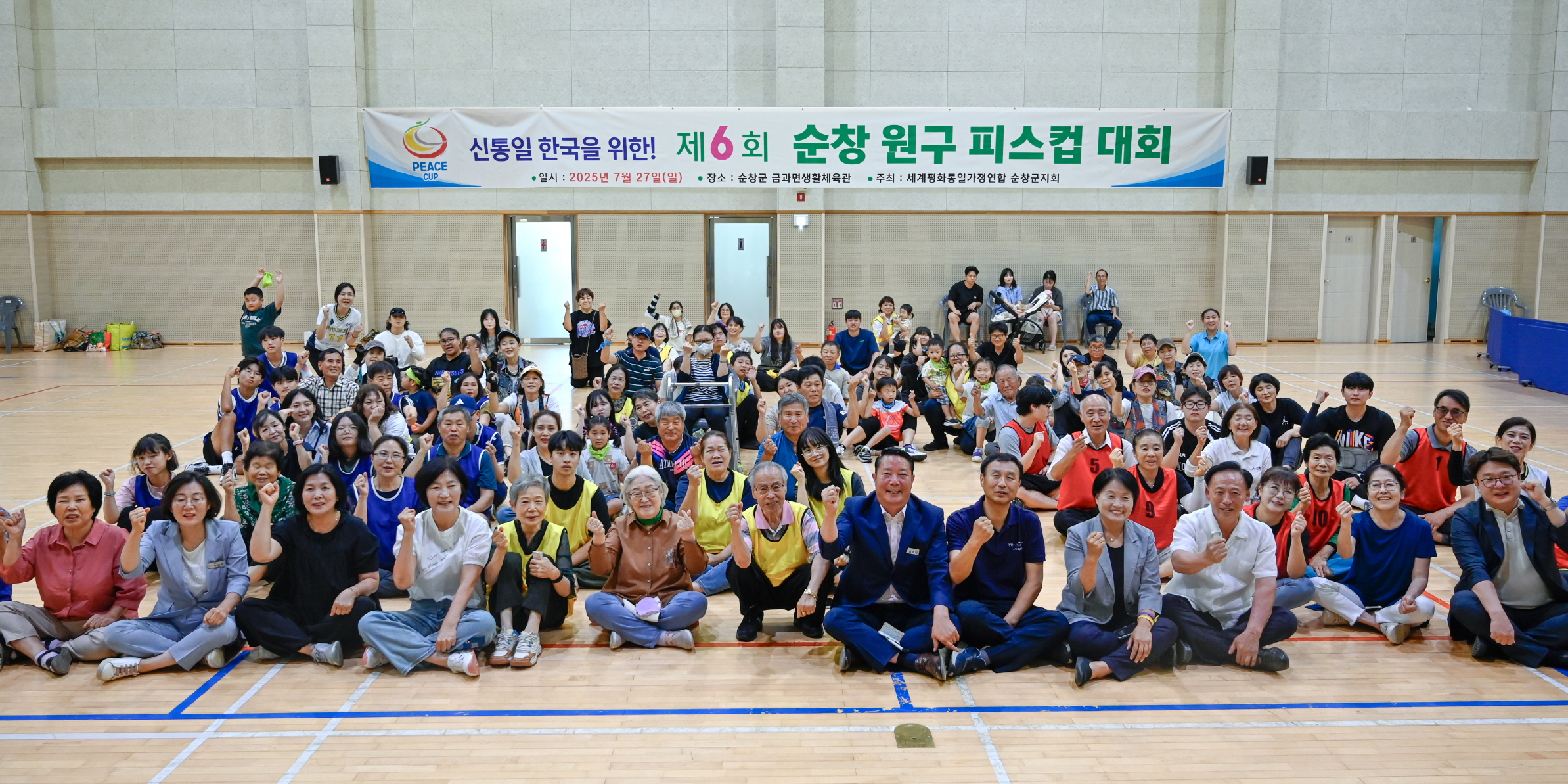 - 27일 금과면 생활체육관에서 ‘제6회 순창 圓球(동글한 공) 피스컵 대회’가 3대가 함께 어우러지는 특별한 축제로 성황을 이뤘다. 순창 가정교회(교회장 이장곤) 주관으로 탁구, 배구, 볼링, 윷놀이 종목에 120여 명의 어린이와 청년, 장년, 어르신들이 참여해 가족 사랑과 이웃과의 화합의 장을 마련했다. -2025년 7월 28일-