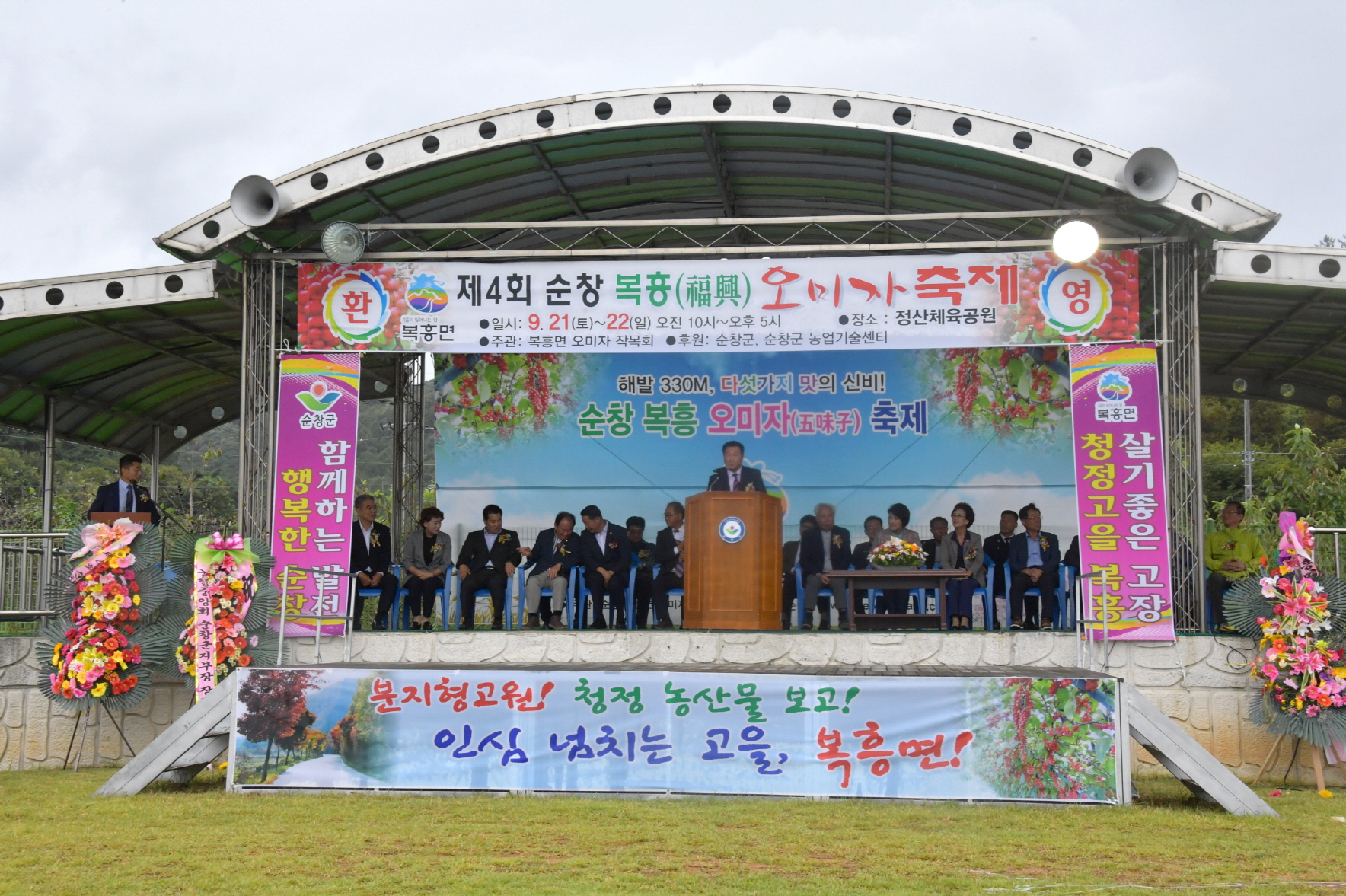 - 순창군의 우수한 품질의 오미자를 직접 수확하고 저렴한 가격으로 살 수 있는 '제4회 순창 복흥 오미자 축제'가 21일과 22일 이틀간 순창군 복흥면 정산체육공원에서 열렸다.순창군 복흥면 오미자 작목회(회장 박현용)가 주관하고 순창군이 후원했다. -2019년 09월 21일-