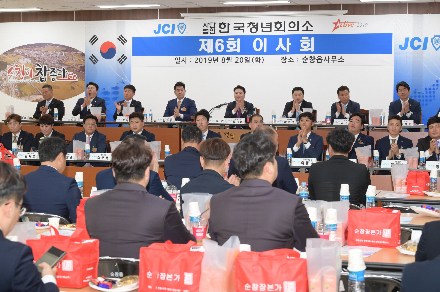 - (사)한국청년회의소(중앙회장 장승필) 제6회 상무위원회와 제6회 이사회가 20일 순창군 순창읍사무소 대회의실에서 열렸다.이날 제68대 장승필 중앙회장, 이종석 상임부회장을 비롯한 회장단 및 감사, 서울, 경기 등 각 16개 지구회장과 순창 청년회의소 양환욱 특우회장 및 역대회장, 회원, 순창청년회의소 이기영회장 및 회원 등 150여명이 참석했다. -2019년 08월 20일-