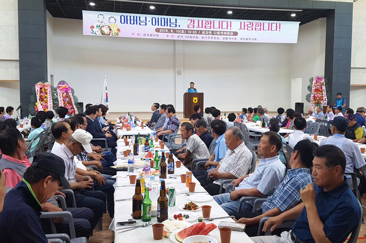 - 순창 금과면 청년회(회장 설재희)는 10일 금과면 다목적 체육관에서 지역 어르신 300여명을 모시고 말복행사를 가졌다. 이번 행사는 군 지원없이 청년회 회원들이 십시일반 모은 회비로 삼계탕을 대접해드리며 훈훈한 행사를 진행했다. -2019년 08월 12일-
