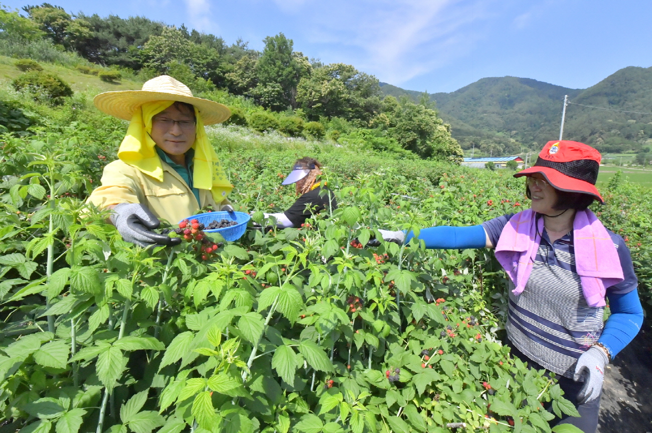 - 순창군 팔덕면 직원들은 21일 일손이 부족한 농가를 찾아 복분자 수확 돕기에 나섰다. 이날 팔덕면사무소와 행정과, 미생물산업사업소 직원 30여명은 장안마을 김신식 복분자 밭 1,300㎡ 에 복분자 수확에 구슬땀을 흘렸다. -2019년 6월 21일-