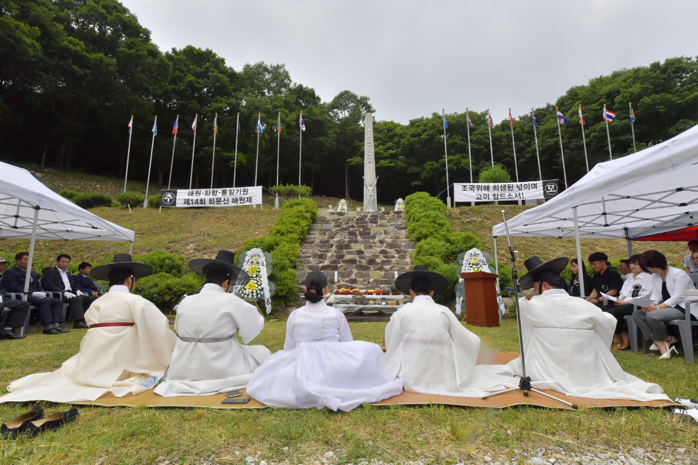 - 제14회 회문산 해원제가 22일 구림면 안정리 회문산 비목공원 위령탑 광장에서 황숙주 군수를 비롯, 조정희 군의원, 주민 등 총 200여명이 참석한 가운데 진행됐다.회문산 해원제는 6. 25 한국전쟁 당시 회문산을 중심으로 무고하게 희생된 양민들의 명복을 기원하고 화해와 용서의 장을 마련코자 준비한 행사다.이날 행사는 기관장과 유족들의 분향 및 헌화, 추념사 및 추모사, 헌시낭송, 추모공연, 비목제창, 조총발사 등의 순으로 진행됐다. -2019년 6월 24일-