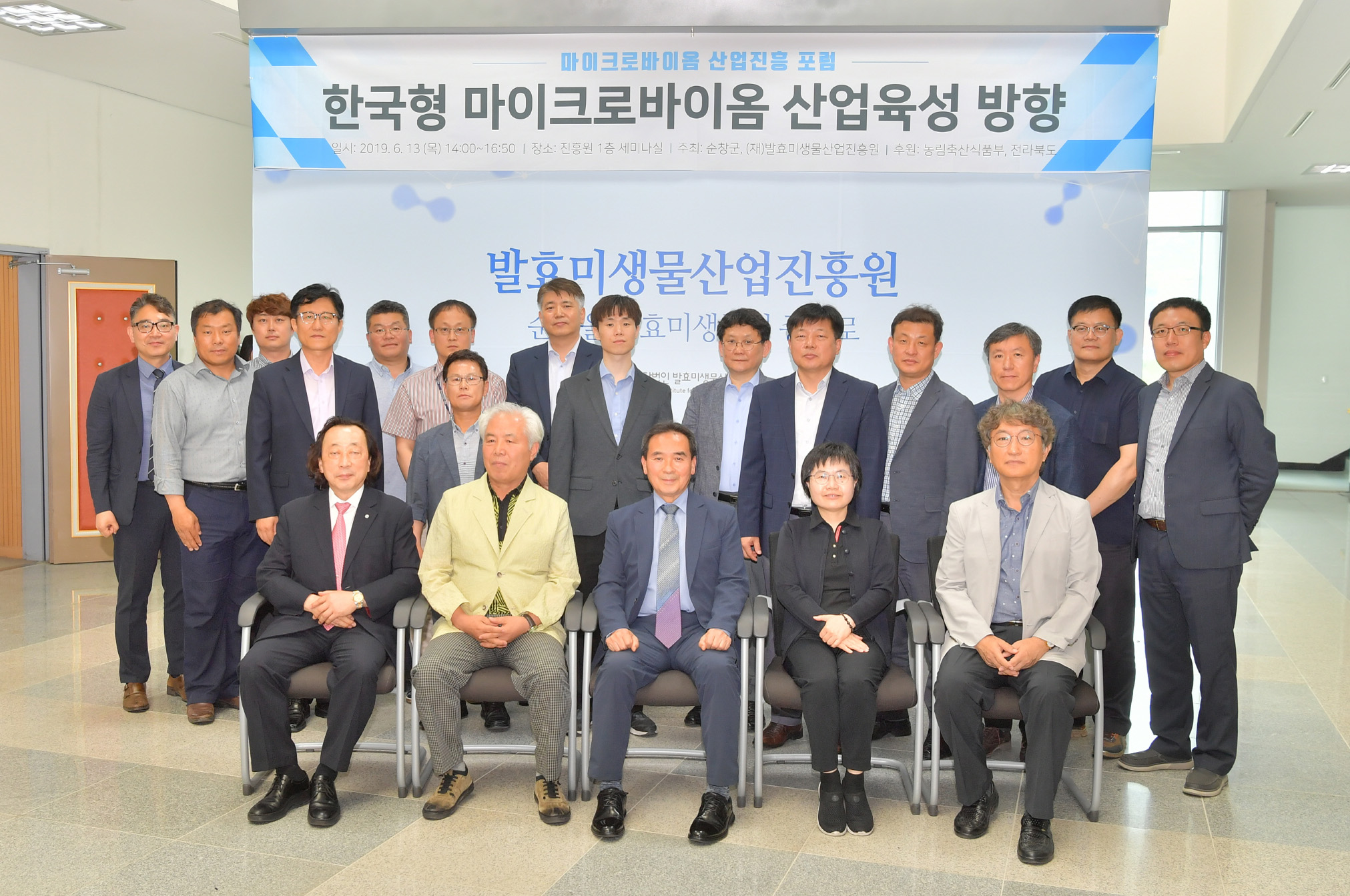 - 13일 바이오헬스 산업의 핵심분야인 한국형 마이크로바이옴 산업육성 방향 모색을 위해 마이크로바이옴 산업진흥 포럼을 개최했다.순창군과 (재)발효미생물산업진흥원이 주최하고, 농림축산식품부, 전라북도가 후원한 이번 포럼에는 황숙주 순창군수와 농림축산식품부 박치형 사무관를 비롯 관련 분야 국내외 대학교수 및 관계자 등 60여명이 참석했다. 이번 포럼에 중앙부처 관계자를 비롯, 관련분야 연구센터 연구원과 대학원생 등 학계, 산업계 관련자들이 대거 참석해, 마이크로바이옴 산업진흥에 대한 뜨거운 관심을 보였다.마이크로바이옴(Microbiome)은 미생물군집과 유전체의 합성어로 미생물군 유전체라고 할 수 있으며, 인간, 동식물, 토양, 축산 등에 공존하는 미생물 군집과 유전체 전체를 의미한다. -2019년 6월 13일-