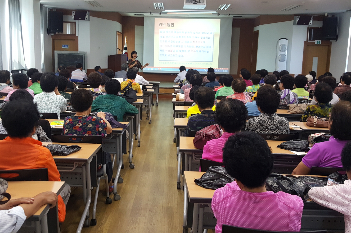 - 순창군보건의료원이 13일 노인복지회관 3층에서 노인대학 학생 160여명을 대상으로 `찾아가는 암 이야기` 교육을 진행했다.이날 교육은 올바른 암 정보를 제공해 `암은 예방 가능한 질환`이라는 인식을 군민들에게 심어주기 위해 마련했다. 이 강사는 이날 암 예방 식사방법으로 8가지 권장사항을 강조하며, 특히 한국인들이 즐겨하는 식습관인 뜨거운 음식과 짠 음식 섭취를 자제해 줄 것을 권고했다. -2019년 6월 13일-