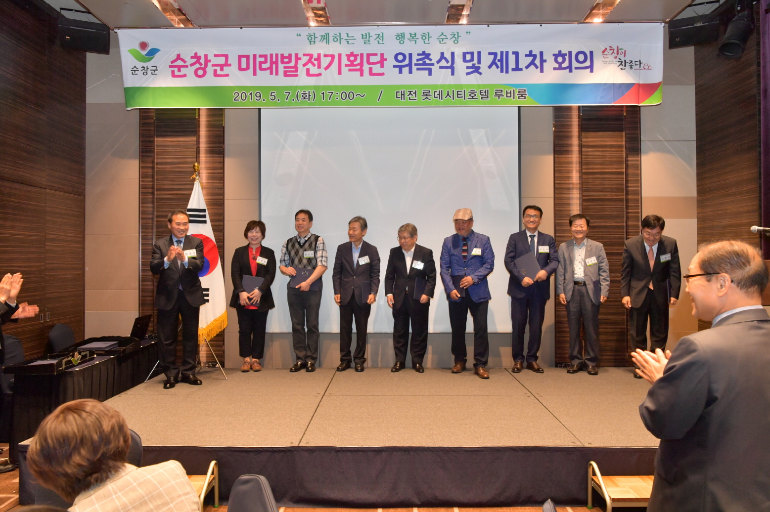 - 순창군의 미래를 함께 고민하고 군정발전을 위한 씽크탱크 역할을 하게 될 ‘순창군 미래발전기획단’이 위촉식을 갖고 본격 출범했다.7일 대전 롯데시티호텔 연회장에서 열린 이번 위촉식 및 1차 회의에는 황숙주 군수를 비롯해 기획단 위원과 관련 실과소원장 등 50여명이 참석해 미래발전기획단 위원에게 위촉장을 수여했다. 이어 공동위원장과 분과위원장 선출 및 향후 기획단의 역할과 운영방안 등에 대해 논의했다.일반행정과 농업농촌, 문화관광, 보건복지, 발효미생물 등 총 5개 분과 48명의 위원으로 구성된 순창군미래발전기획단의 공동위원장에는 전북대 설경원 교수가 선출됐다. -2019년 5월 7일-