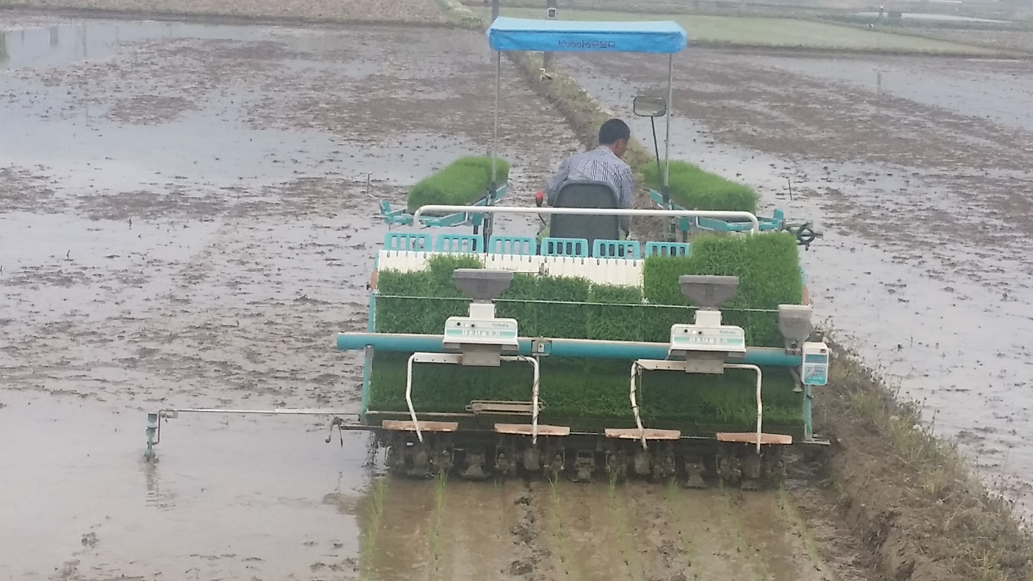 - 순창 팔덕면 올 해 첫 모내기가 25일 태촌마을 윤영호(66세) 이장의 친환경 재배단지에서 실시됐다.모내기 면적은 7ha며 품종은 동진찰벼로 지달 9일 못자리를 한지 36일만으로 작년에 비해 3~4일 가량 늦다. 이번 모내기한 품종인 동진찰벼는 관내 재배면적이 40ha로 올 8월말쯤 수확해 친환경 햅쌀로 출하될 계획이다. 올해도 쌀값이 작년수준 만큼 유지될 길 기대해본다. -2019년 4월 26일-