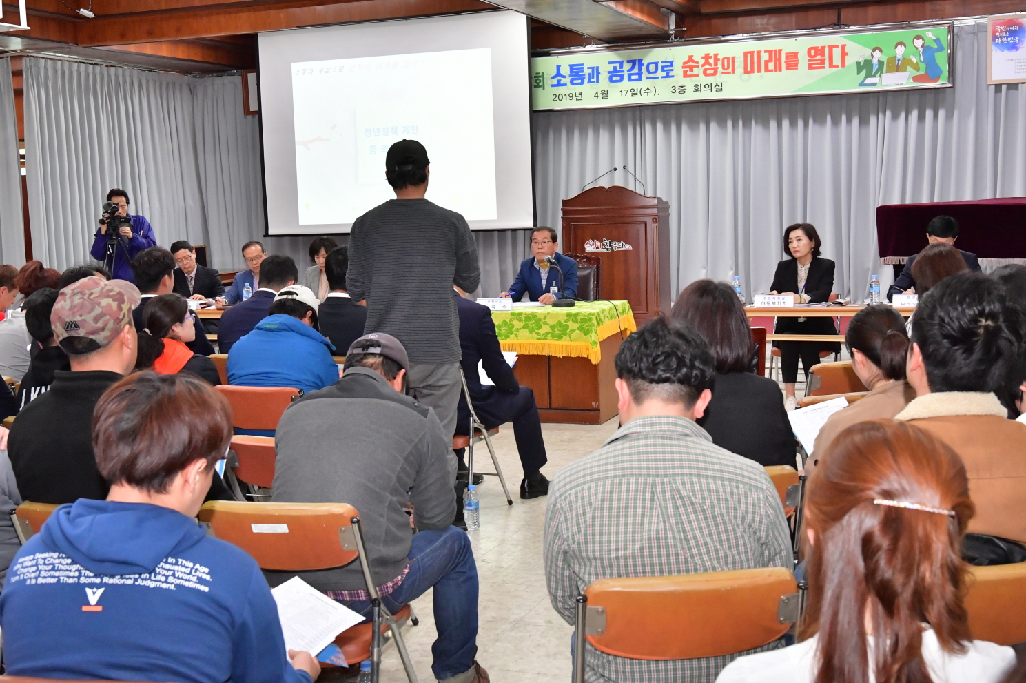 - 순창군이 “소통과 공감으로 순창의 미래를 열다”라는 주제로 지역청년 120여명이 참석한 가운데 청년정책 간담회를 개최했다.이번 간담회는 저출산과 고령화로 지방소멸론에서 자유로울수 없는 순창군이 어떤 전략으로 난관을 극복할 지에 대해 청년들의 다양한 의견을 수렴하고자 마련했다. -2019년 4월 18일-