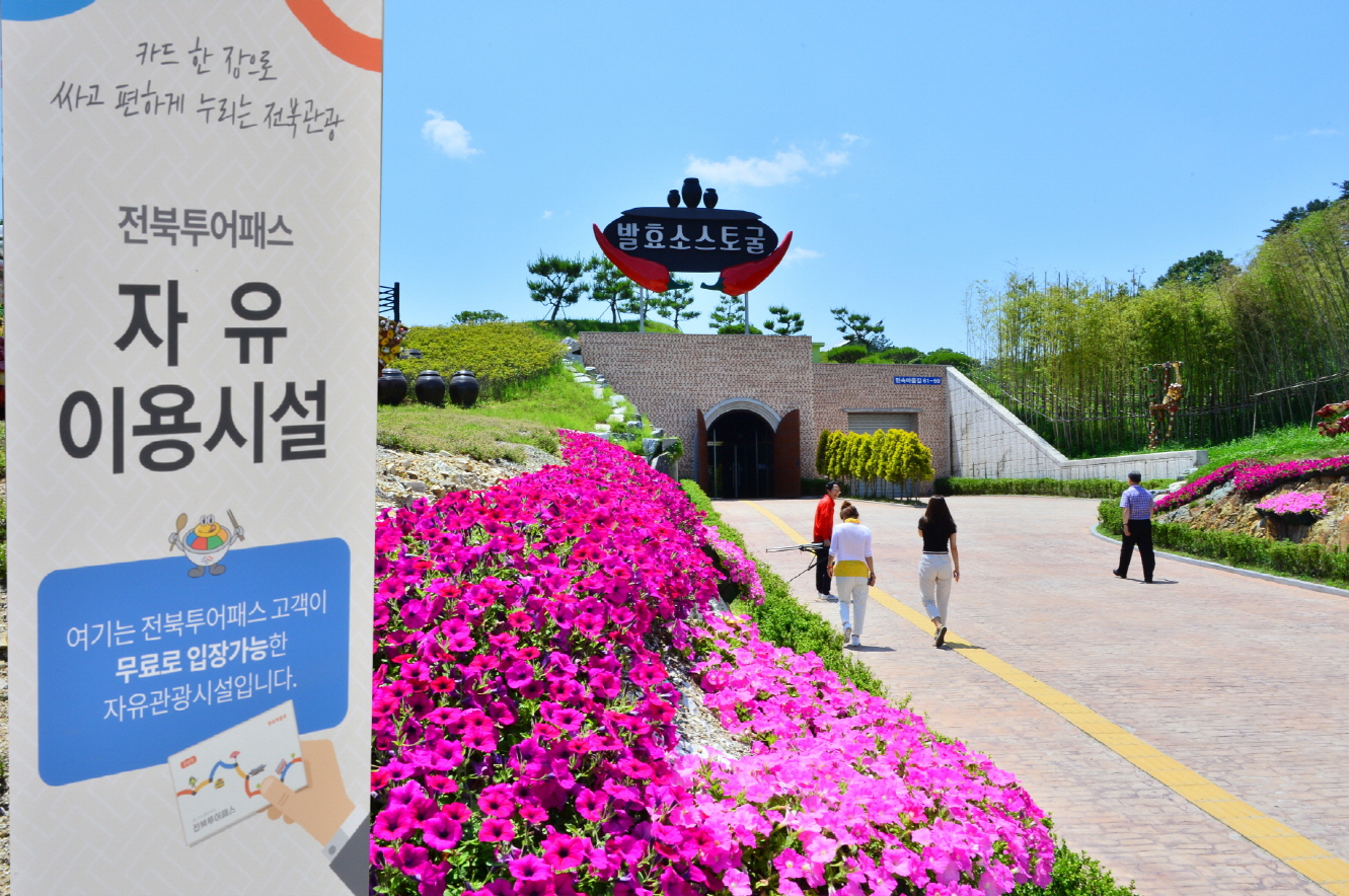- 순창군이 최근 발효소스토굴을 전북투어패스 자유이용시설로 가입해 관광객들이 무료로 이용할 수 있다.전북투어패스는 한 장의 카드로 전라북도 주요 유료관광지, 맛집, 숙박 등 특별할인을 제공하는 자유이용권형 관광 패스카드다. 현재 순창군은 4곳의 자유이용시설과 50곳의 특별할인가맹점이 있어 카드이용의 편리함을 제공하고 있다.발효소스토굴은 순창읍 민속마을단지 내 위치해 있으며, 다양한 전시실과 2종의 VR체험, 미디어아트, 트릭아트 등 다양한 시설을 갖추고 있다. -2019년 4월 12일-