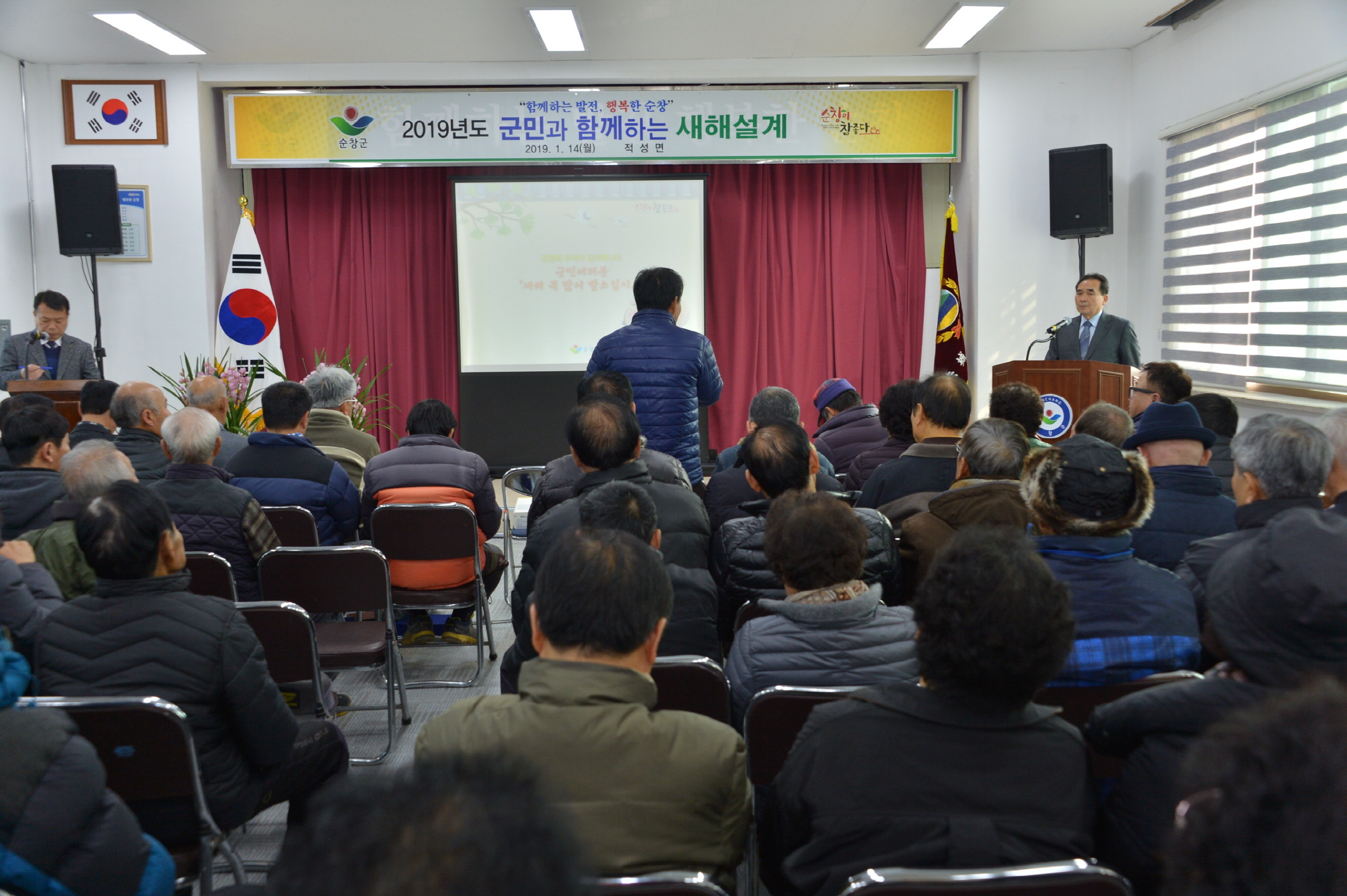 - 14일 적성면을 시작으로 오는 22일까지군민과의 소통을 강화하고 군정발전을 모색하기 위해 황 군수가 읍면을 직접 찾아 군민과 소통을 시작하는 읍면 현장방문을 진행한다.15일에는 금과면과 풍산면, 16일 복흥면과 쌍치면, 17일 인계면과 구림면, 18일 팔덕면, 21일 동계면, 22일에는 순창읍과 유등면을 끝으로 일정을 마무리한다. -2019년 1월 14일-