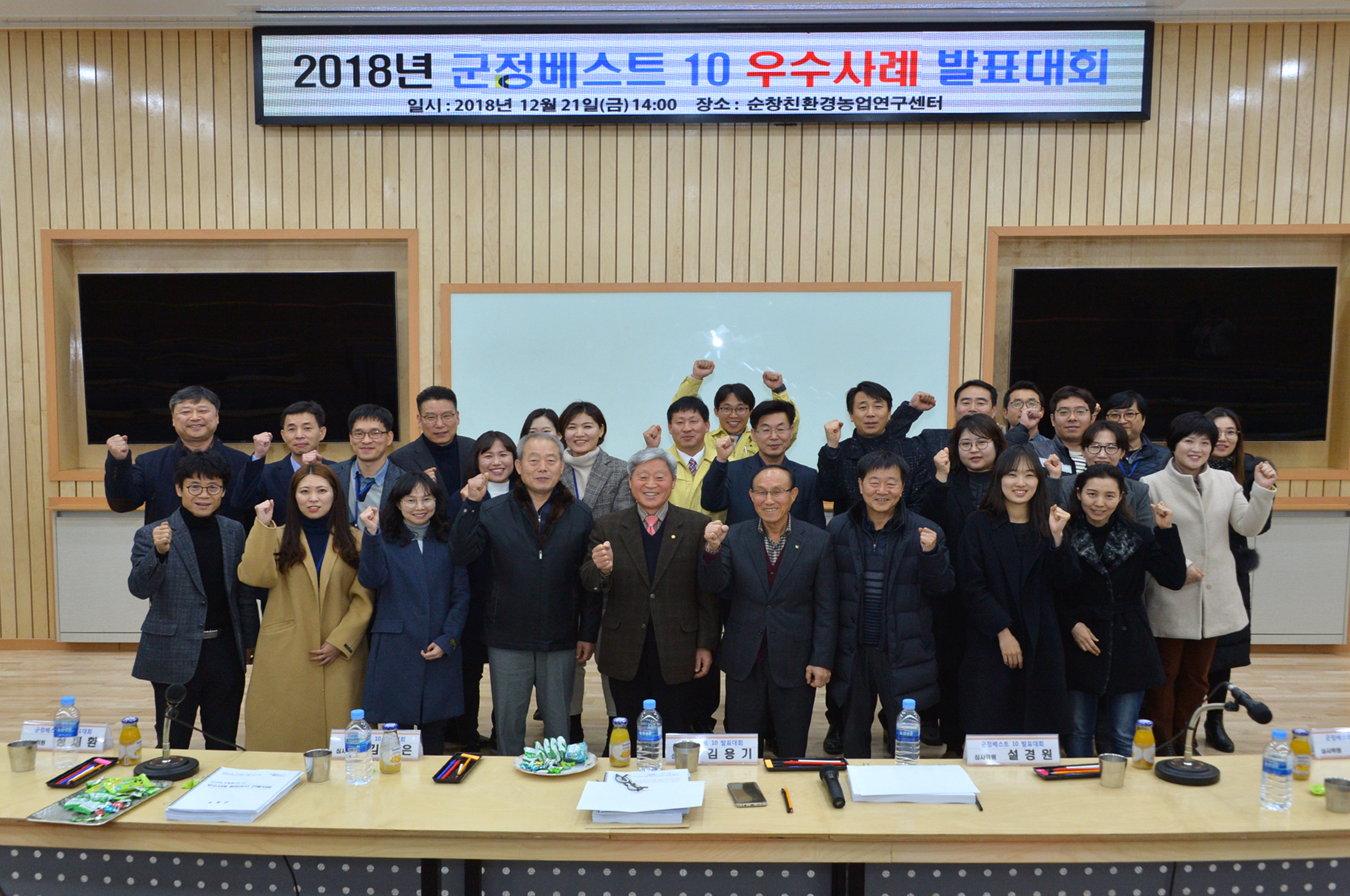 - 순창군이 올 한해 군정을 빛낸 10개의 우수사례를 확정하고 21일 최고를 가리는 ‘군정베스트 10’ 발표대회를 가졌다. 최종 발표심사에 오른 10개의 우수사례는 ▲신병수료식도 가능했던 순창 ▲자립적 성장을 위한 지역주도형 일자리 창출사업 ▲주차환경 개선을 통한 교통복지 증진(공영주차장 조성) ▲순창군 문화융성을 위한 문화공연 확대 ▲행복주택 신축사업 ▲우리집의 SOC 순창군 주거환경 개선사업 ▲농촌특화자원 활용 MICE 산업 육성사업 ▲2018 순창 세계 소스 박람회 ▲지역연계의 한계를 넘다 ‘순담 메타서클 프로젝트’ ▲주민 스스로, 주민이 필요한 곳에, 주민을 찾아 움직이는 ‘밀착형 생활복지’ 등이다. -2018년 12월 21일-