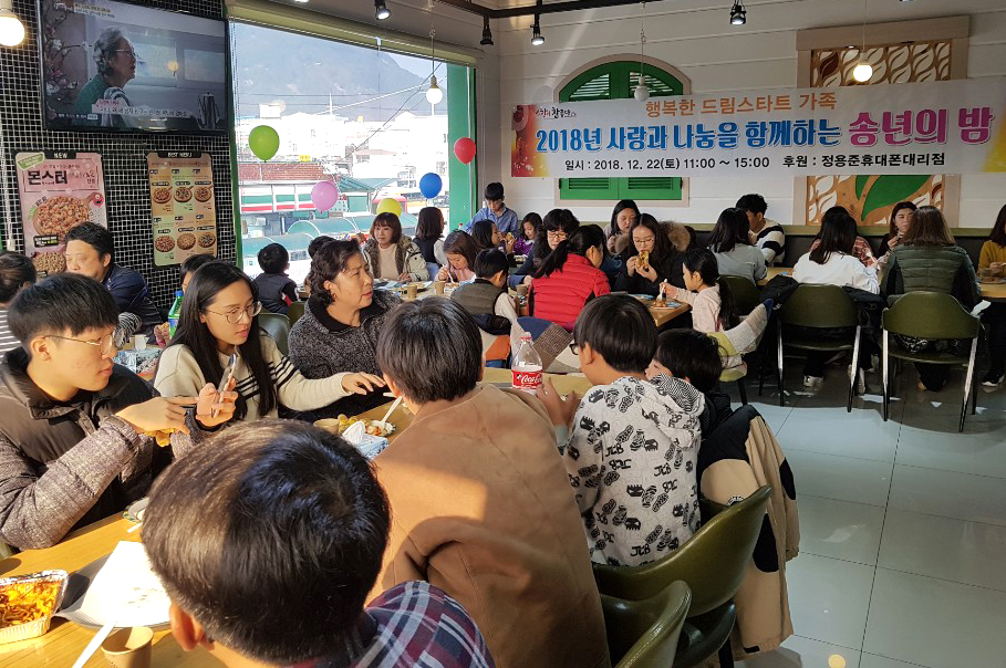- 22일 한해를 마무리하며 드림스타트 가족을 위해 한해동안 아끼지 않고 지원해주시는 후원인과 함께하는 송년행사를 가졌다.이날 행사는 드림스타트가족과 후원인과의 만남, 장기자랑, 서로에 대한 소감 나누기 등으로 진행됐다. -2018년 12월 24일-