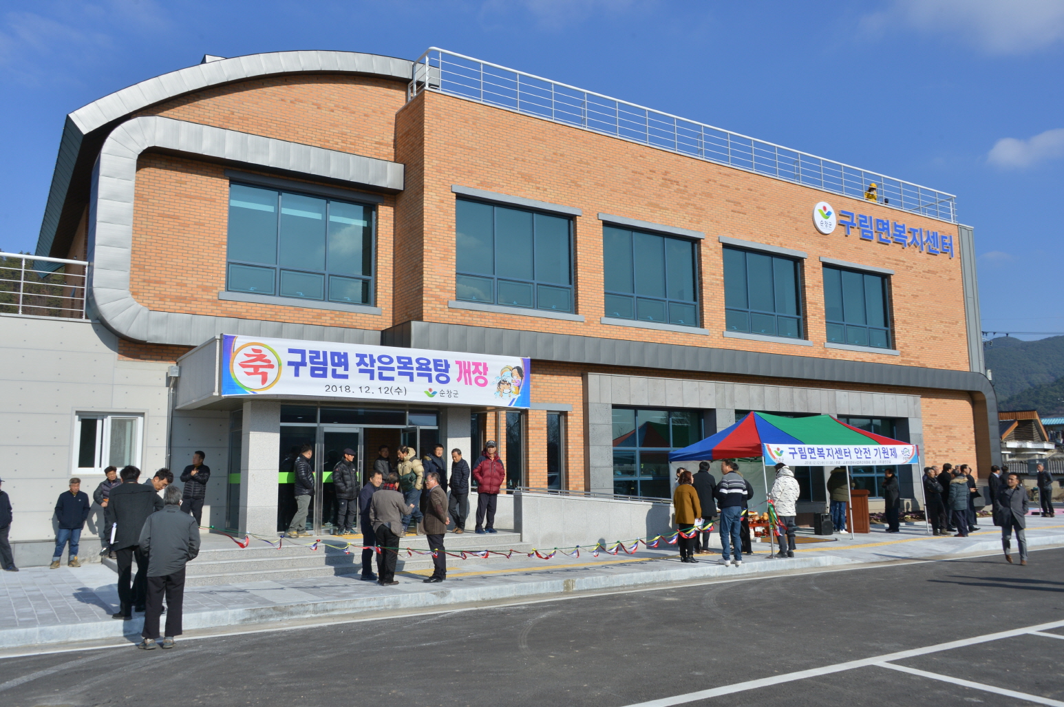 - 12일 구림면 복지센터 준공을 맞아 구림면 작은목욕탕이 개장했다. 이날 황숙주 군수, 정성균군의장 및 면민 등 200여명이 참석한 가운데 성황을 이뤘다. 구림면 작은목욕탕은 주 3일 운영되며 화요일과 목요일에는 여자, 수요일에는 남자가 이용할 수 있으며 요금은 구림면민 2,000원이며 노인은 1,000원의 이용료를 받는다. -2018년 12월 12일-
