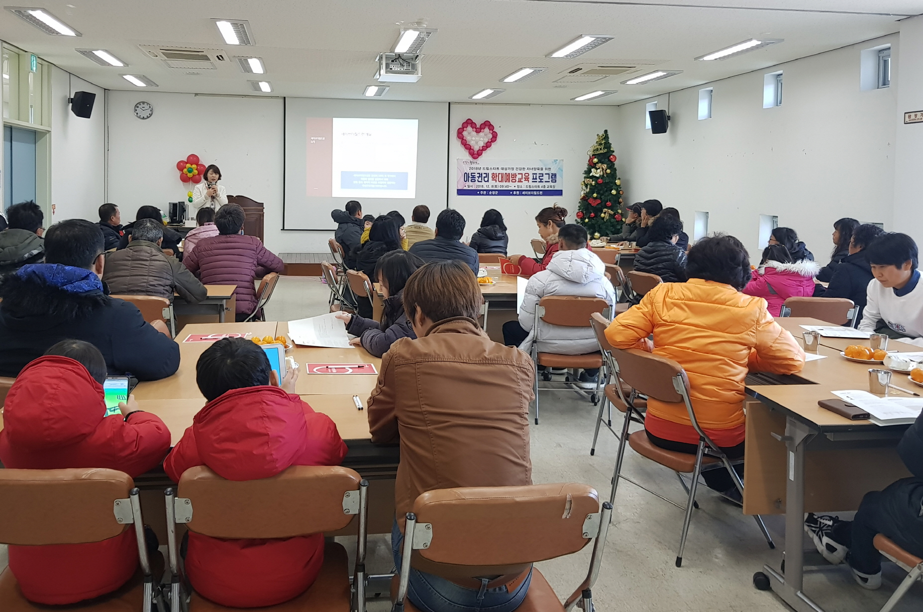 - 8일 아동권리를 존중하는 드림스타트 부모 등 60여명이 참여한 가운데 아동권리 학대 예방교육을 실시했다.이번 교육은 아동권리의 이해와 권리감수성 향상을 통해 아동학대를 예방하고, 아동권리에 입각한 양육.보육 실천, 아동 스스로 권리 인식을 높이고자 마련됐다. -2018년 12월 10일-