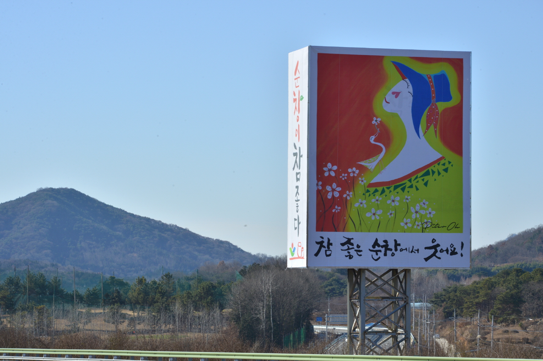 - 광주-대구간 고속도로변에 위치한 금과 송정마을 앞 대형옥외광고판이 9일 새롭게 단장됐다.이번에 교체된 광고물은 팝 아티스트 ‘피터오’작가의 웃음시리즈 중 하나로 바쁘게 보내는 현대인들에게 웃음을 선물하는 작품이다. 이 작품은 ‘참 좋은 순창에서 웃어요!’ 문구와 함께 순창을 지나는 운전자들과 관광객들에게 웃음을 통해 행복을 전하고, ‘순창이 참 좋다’ 군의 브랜드 이미지 재고에도 도움이 된다. ‘웃음’을 주제로 한 미술 및 문학작품으로 주목받는 피터오 작가는 순창군 적성면 출신으로 지난 2015년 현대미술 대표작가 10인에 선정되기도 했다. 저서로는 웃음을 전달하는 에세이 책 ‘SMILE WEEK’가 있다. -2018년 12월 10일-