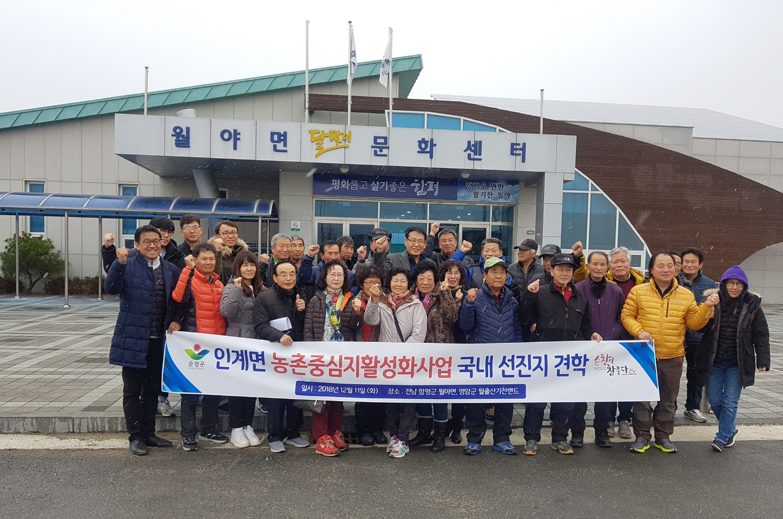 - 순창군 인계면 농촌중심지활성화사업 추진위원회(위원장 최임식)는 11일 성공적인 사업추진을 위해 선진지 견학을 다녀왔다. 이번 견학은 추진위원회와 주민대표, 군 관계자 등 30명이 참여해, 함평 월야면과 영암군 영암읍의 커뮤니티센터, 주차장, 경관개선사업, 물놀이장 등 시설을 견학하고 프로그램 운영 노하우 등을 들었다. -2018년 12월 11일-