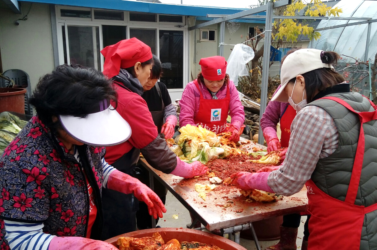 - 동계면 행복나누미회(회장 황명이)에서는 10일 회원 20여명이 모여 사랑의 김장김치 담기행사를 가졌다.이날 행사에는 150여 포기의 배추김치를 담가 동계면에 거주하는 할아버지 독거노인 20여명을 선정해 전달했다. -2018년 11월 12일-