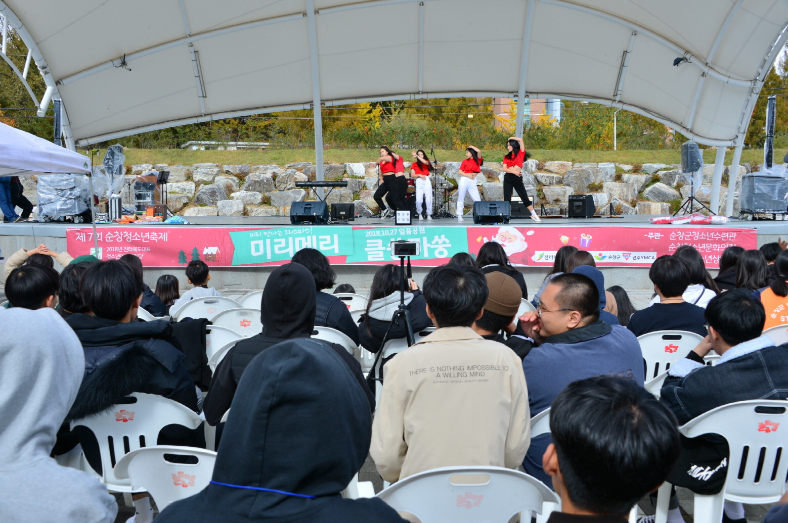 - 27일 제7회 순창청소년축제가 일품공원에서 `미리메리 클쑹마쑹`이라는 슬로건으로 10월에 크리스마스 분위기를 조성하며 열렸다.청소년 30여명으로 구성된 축제기획단이 지난 9월 29일부터 매주 토요일마다 회의를 통해 공연, 홍보, 부스운영 등 3개 팀으로 구성해 각 팀장을 주축으로 축제를 준비했다.이날 행운권 추첨을 시작으로, 순창청소년수련관 이신자 관장의 개회사, 추진단의 개회선언, 노래자랑과 초청공연 등이 이어졌고, 다양한 체험거리를 준비했다. -2018년 10월 27일-