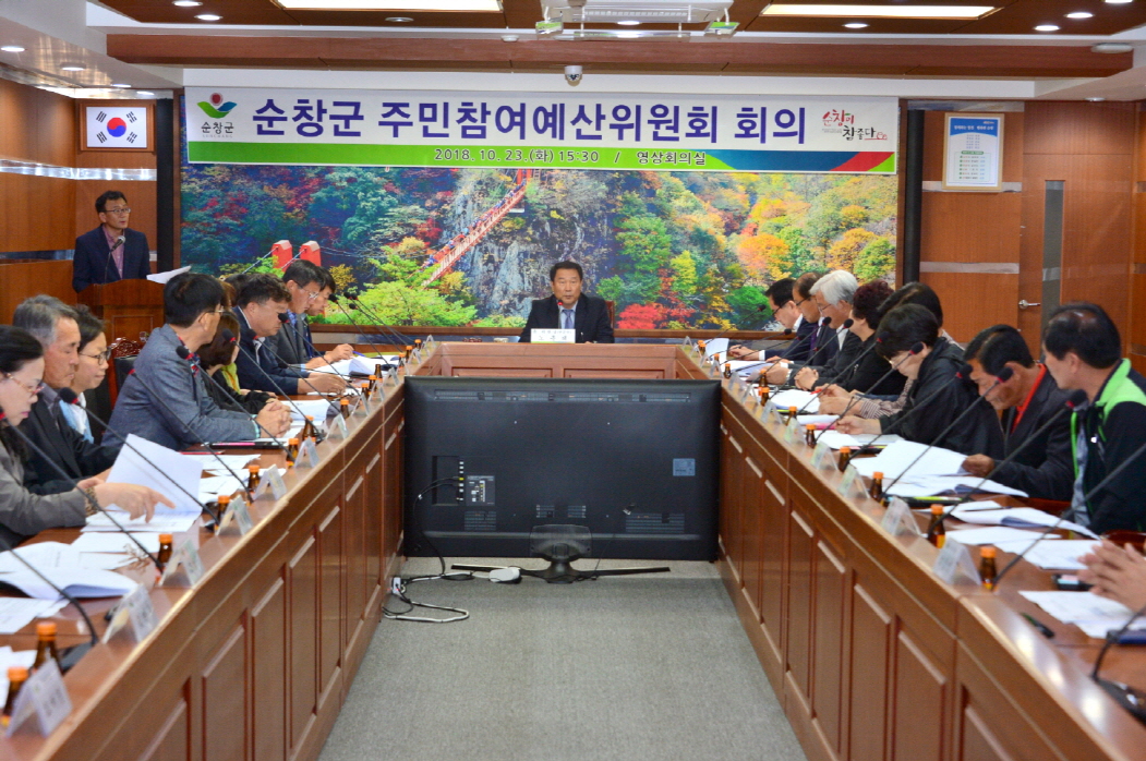 - 23일 군청 영상회의실에서 2019년 주민참여제안사업 편성을 위한 주민참여예산위원회를 열고 총 35건의 주민 제안사업에 대한 심의를 진행했다. 이날 주민참여예산 위원회에는 노홍래 주민참여예산위원회 위원장을 비롯한 읍·면 주민참여위원, 그리고 사업부서 담당공무원 등 총 40여명이 참석했다.심의대상 주민참여예산은 지난 8월에서 9월까지 군 홈페이지와 읍·면사무소에 접수한 35건의 사업예산으로 84억 1천 2백만원 규모다. -2018년 10월 27일-