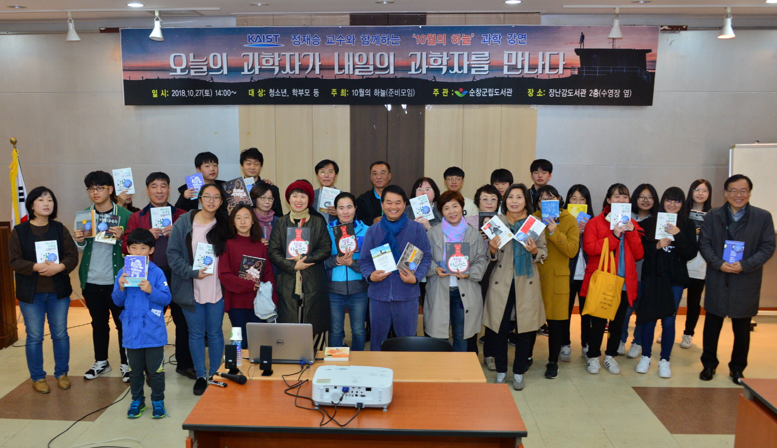 - 27일 장난감도서관 2층(수영장옆)에서 과학자들의 재능기부행사인 「10월의 하늘」 과학강연을 개최했다.이날 강연은 “오늘의 과학자가 내일의 과학자를 만나다”라는 주제로, 1부 강연은 한국에너지기술원 이동원 연구원, 2부는 소셜위크 한왕근씨가 강연자로 나섰다. -2018년 10월 27일-