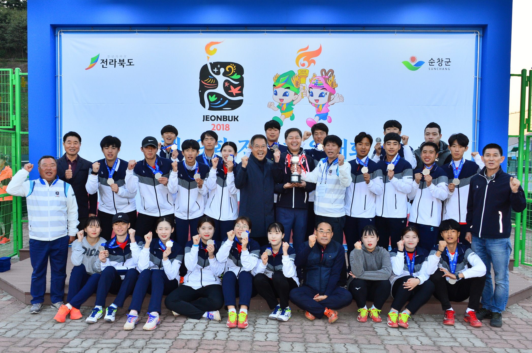 - 사)대한정구협회는 18일 최종 경기 마감 후 제 99회 전국체전 정구경기 단체전 종합 순위 1위로 전북팀이 1위를 차지했다. 순창군 선수들로 이루어진 전북팀은 순창제일고 고등부 남자 은메달, 고등부 여자 은메달, 일반부 순창군청 선수단 은메달 등 개인과 단체전에서 메달을 차지해 종합 1위의 영광을 차지했다. -2018년 10월 18일-