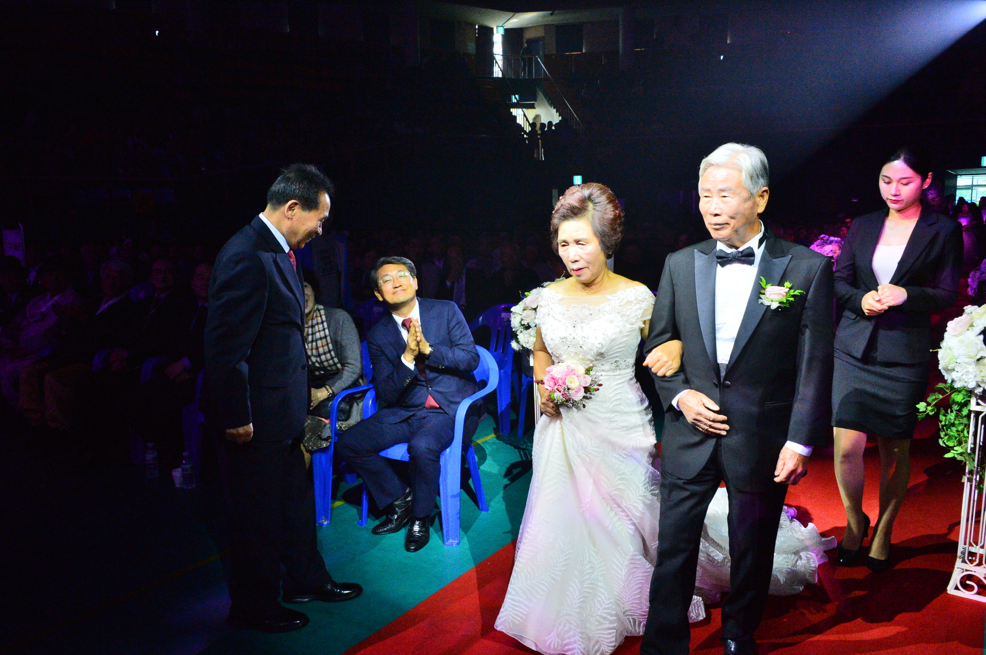 - 구례·곡성·순창·담양군이 참여하는 장수벨트행정협의회가 주관한 ‘구곡순담 100세 문화한마당’ 행사가 12일 구례군 실내체육관에서 열렸다. 올해는는 턱시도와 웨딩드레스를 입고 뮤지컬 형태로 ‘리마인드웨딩-뮤지컬 청춘’으로 진행한 회혼례로 많은 관심을 받았다. -2018년 10월 12일-