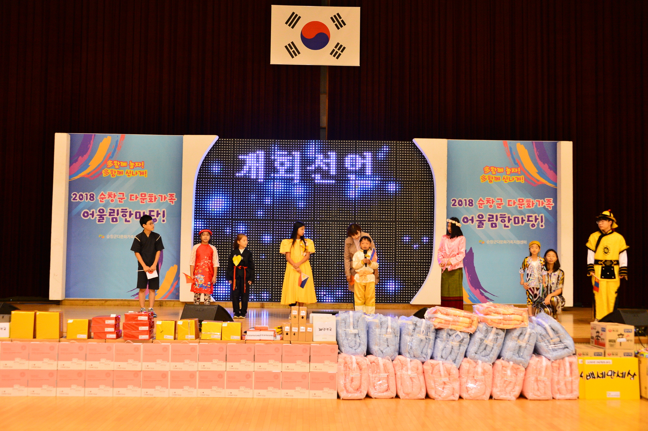 - 순창군 다문화가족 큰잔치인 2018년 ‘순창군다문화가족 어울림한마당’ 행사가 13일 순창 국민체육센터에서 300여명의 다문화가족이 참석한 가운데 성대하게 치러졌다. 이날 행사는 순창에 거주하는 308세대의 다문화가족들이 가족간의 화합을 도모하고, 생활이 바빠 자주 만나지 못했던 동향친구들을 만나 우정을 다지기 위해 마련됐다. -2018년 10월 13일-