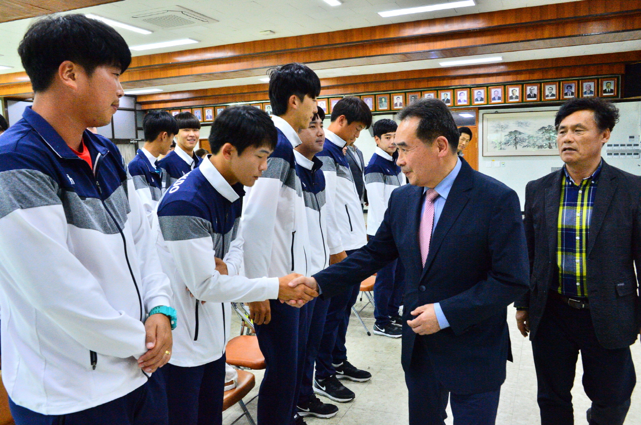 - 2일 전라북도를 대표해서 제99회 전국체육대회에 출전할 대표선수 발대식을 가졌다. 이번 전국체육대회는 익산시가 주최해 오는 12일부터 18일까지 7일간 도내 14개 시군에서 열린다. 이번에 출전하는 선수단은 정구 남자일반부 군청팀 6명, 여자일반부 6명, 남자 고등부 7명, 여자 고등부 7명(제일고), 역도 남자 고등부 2명(순창고) 등 2개 종목에 코치 등 31명이 도 대표로 참가한다. -2018년 10월 02일-