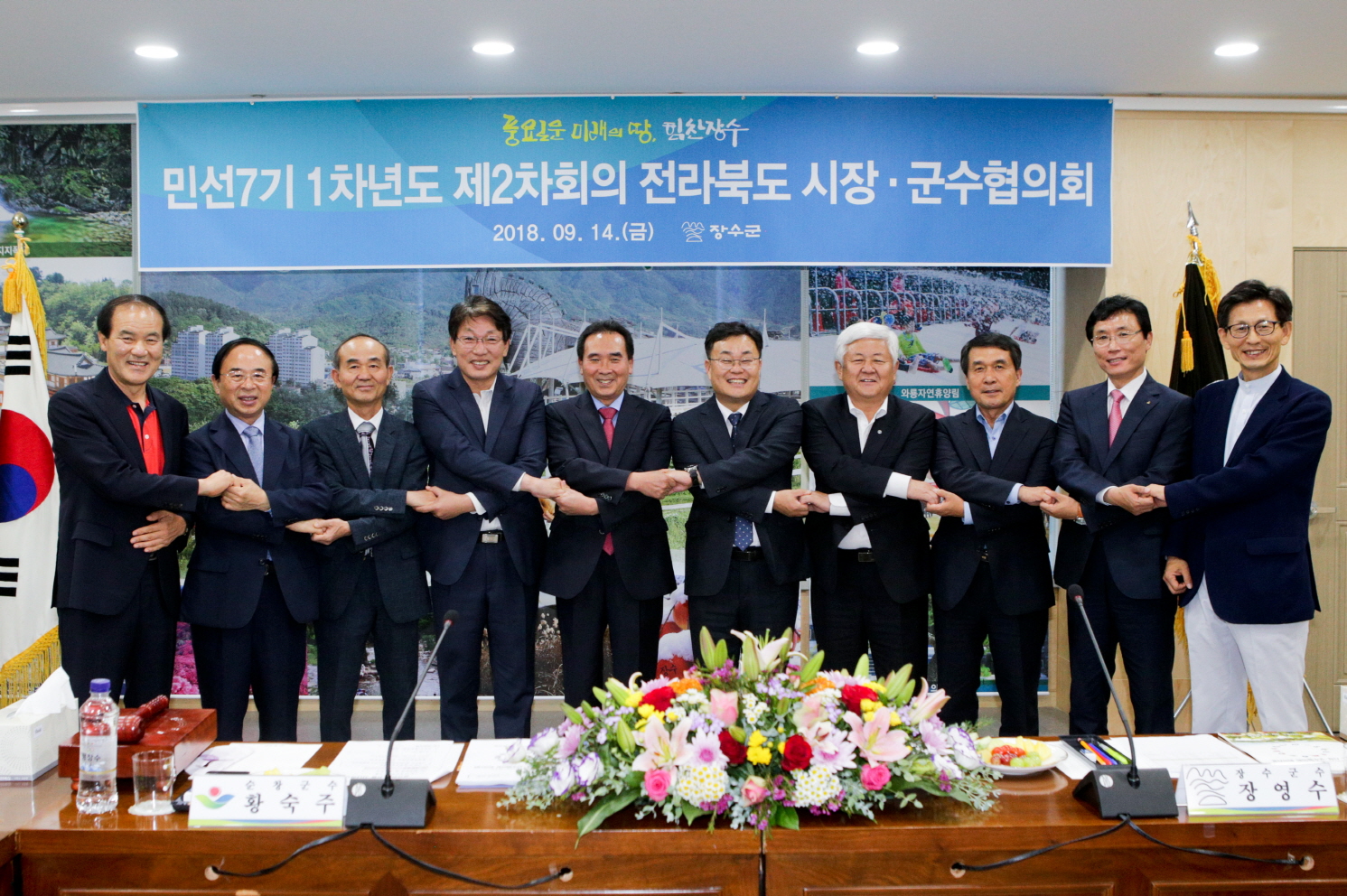 - 전북시장군수협의회 회장인 황숙주 순창군수는 14일 장수군청에서 민선 7기 1차년도 제2차 정기회의를 주재하였다. -2018년 9월 14일-