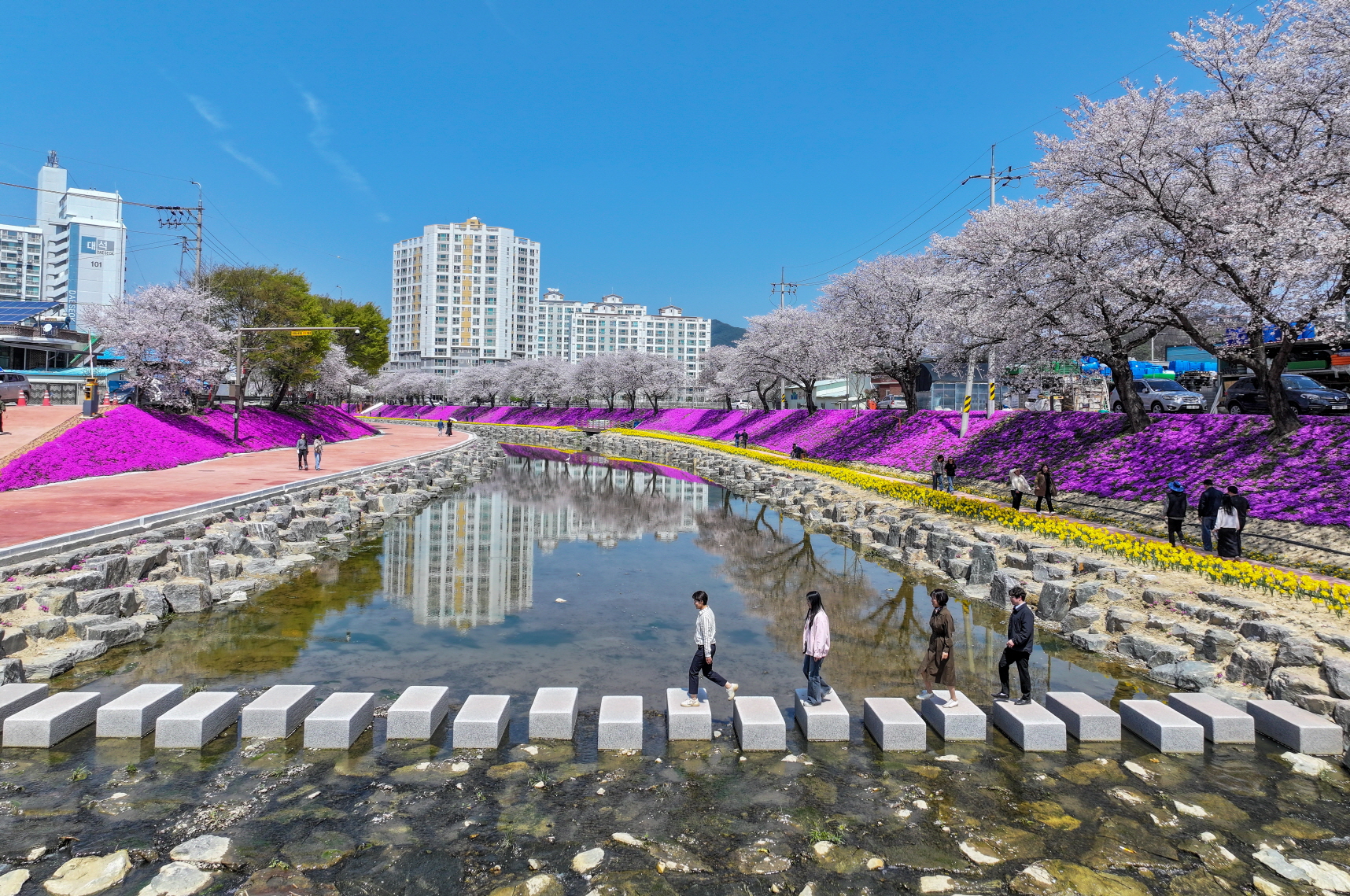 - ‘경천·양지천 수변 종합개발사업’의 일환으로 꽃잔디와 수선화, 튤립이 장관을 이뤘던 양지천 산책로에 올여름부터 가을까지 또 한 번의 꽃길을 조성하며 '사계절 꽃길' 만들기에 나섰다. 이번에는 버들마편초, 황화코스모스, 일반 코스모스를 차례로 식재해 7월부터 11월까지 계절별로 색다른 꽃길 풍경을 선사하고 연중 관광객이 찾는 계절형 명소로 만들겠다는 계획이다. -2025년 5월 27일-