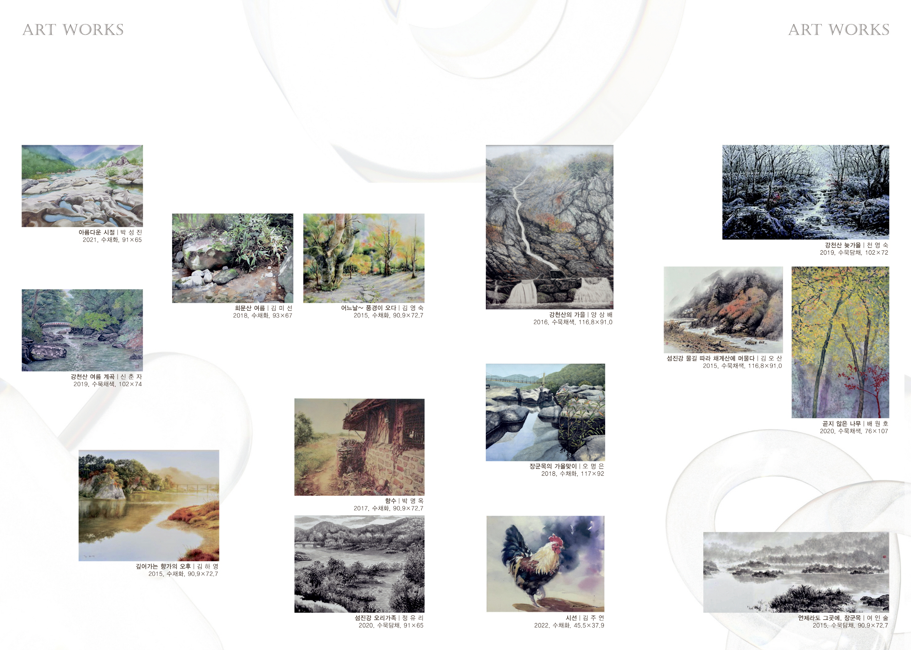 - 순창군 섬진강미술관이 오는 6월 2일부터 30일까지 한 달간 소장품 기획전‘물로 그려낸 세계; 번지고, 스미고, 머물다’를 개최한다. 이번 전시는 수묵, 수채, 담채 등 '물'을 매개로 한 동서양 회화 14점을 선보이며, 물의 흐름과 감성을 통해 인간의 사유와 정서를 표현한 작품들로 구성됐다. -2025년 5월 27일-