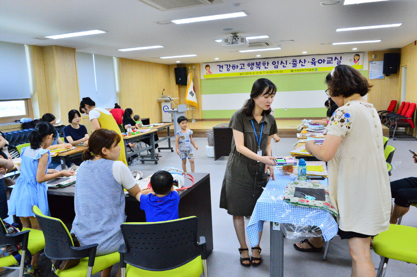 - 순창군 보건의료원은 내달 7일까지 매주 ‘임실·출산육아 건강교실’을 운영해 엄마와 아이가 함께 행복한 순창 만들기에 나섰다.이번 건강교실은 임신부와 영유아 보호자 20여명이 참여하며 매주 금요일 보건의료원 3층 회의실에서 진행된다. 프로그램은 수공예 아기용품만들기, 기저귀 가방, 토탈공예, 산모와 유아를 위한 베이비 로숀, 오일 만들기 등 다양한 체험형 프로그램으로 참가자들의 뜨거운 호응을 얻고 있다. -2018년 8월 10일-