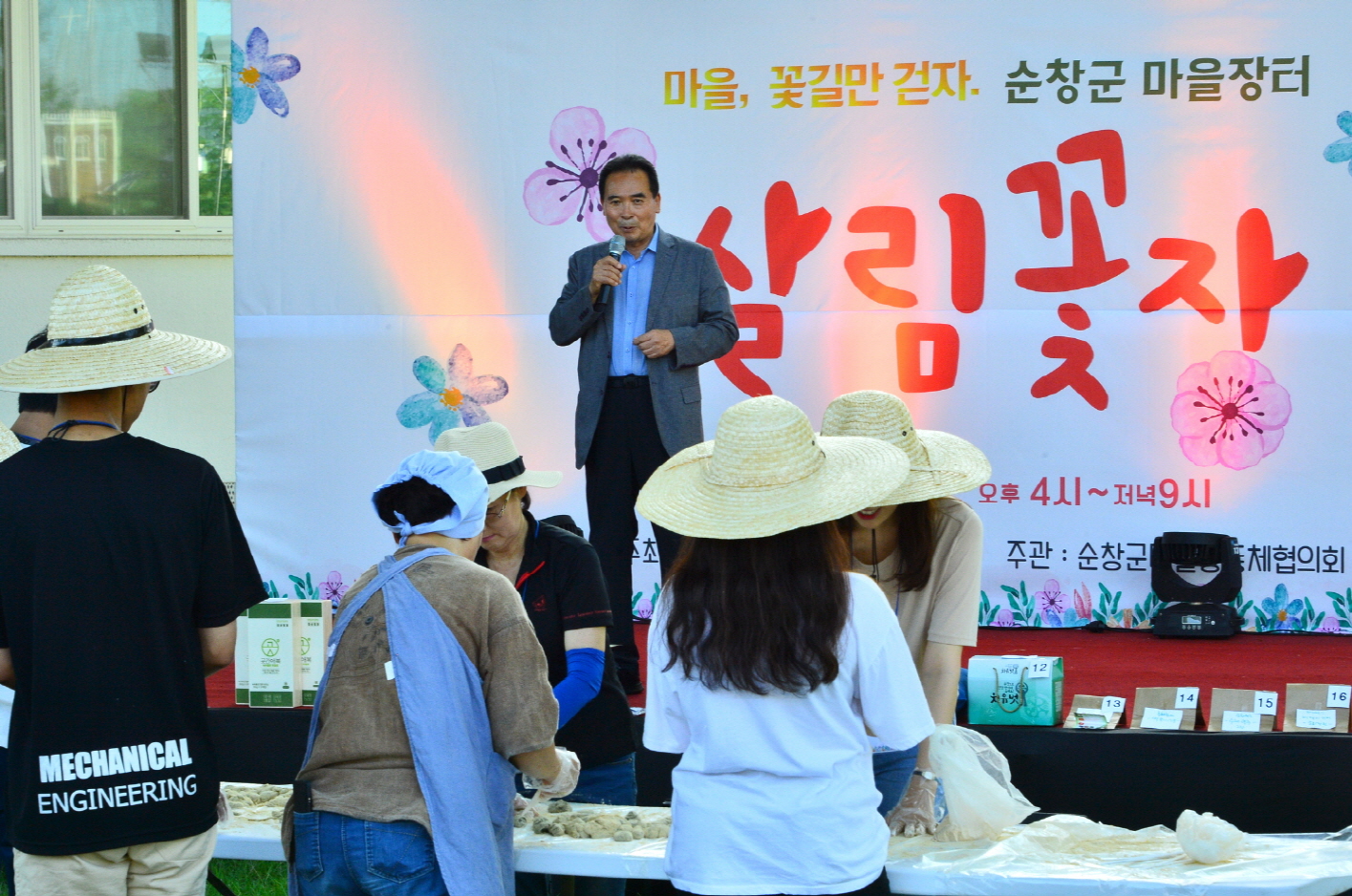 - 순창군 마을장터 ‘살림꽃장’이 13일 군청 잔디밭에서 첫 장터를 개장했다.이날 체험장터에서는 풍산 덕산마을 물레빚기, 달팽이 껍질 색칠하기, 추령장승촌 나무공예, 동계 수정마을 천연염색 판매 및 체험, 미나리화분 만들기, 떡체험 등의 공간으로 구성됐다. -2018년 7월 13일-