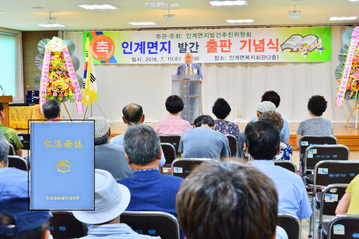 - 인계면의 역사와 인물, 문화가 총 망라된 인계면지가 출판기념회가 11일 인계면복지회관에서 황숙주 군수와 정성균 군의회 의장, 이장, 사회단체장과 지역민들 100여명이 참석한 가운데 열렸다. -2018년 7월 11일-