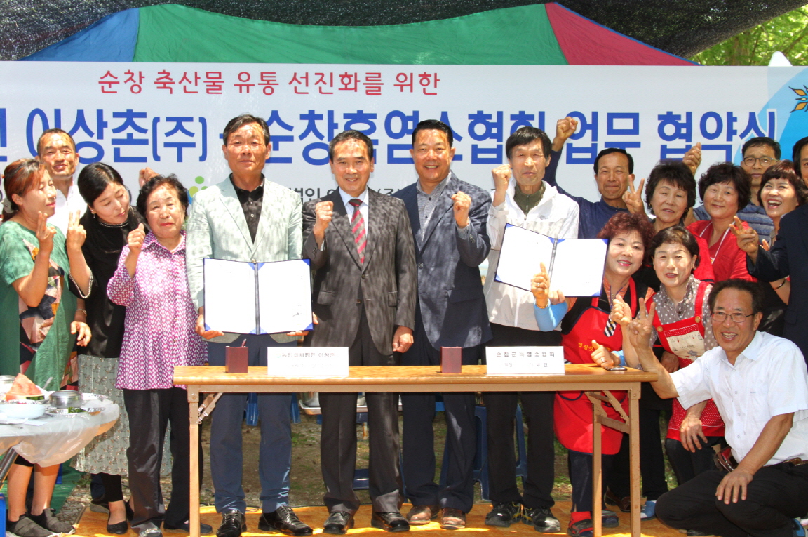 - 농업회사법인 이상촌(주) 설성환 대표는 15일 팔덕면 소재의 순창흑염소고을에서 흑염소협회 이규현 회장과 업무 협약식을 진행하였다.이날 제7회 전국동시지방선거에 당선된 황숙주 순창군수를 비롯하여 흑염소협회 회원 및 지역민 600여 명이 참석한 가운데 성대히 진행되었다. -2018년 6월 15일-
