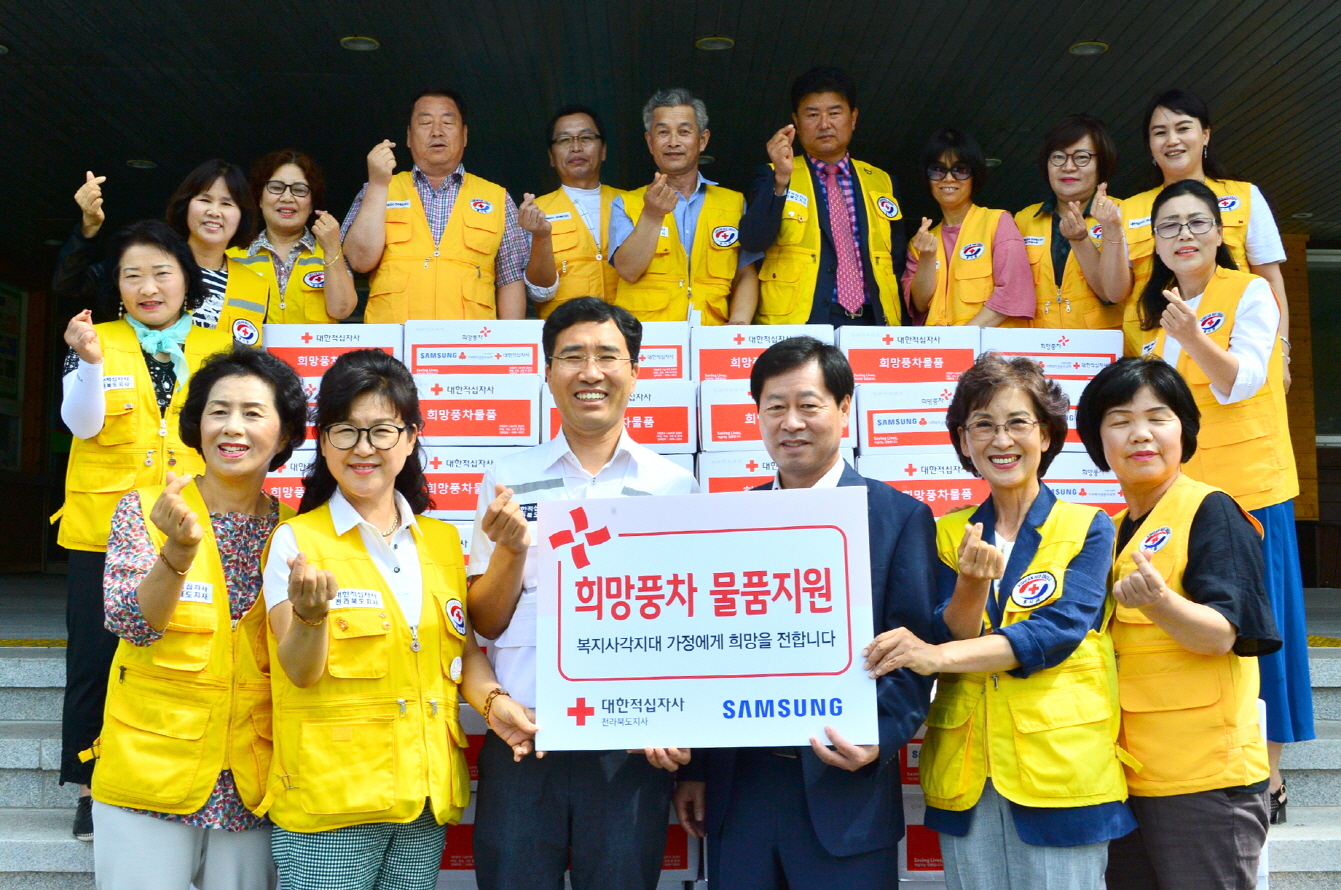- 20일 대한적십자사 전북지사 이건웅 사무처장 및 황진화 순창지회장 및 회원 20여명은 순창군청을 방문해 어려운 이웃을 위해 써달라며 간장, 고추장, 밀가루 등 이 포함된 부식세트 105세트를 전달했다. -2018년 6월 20일-