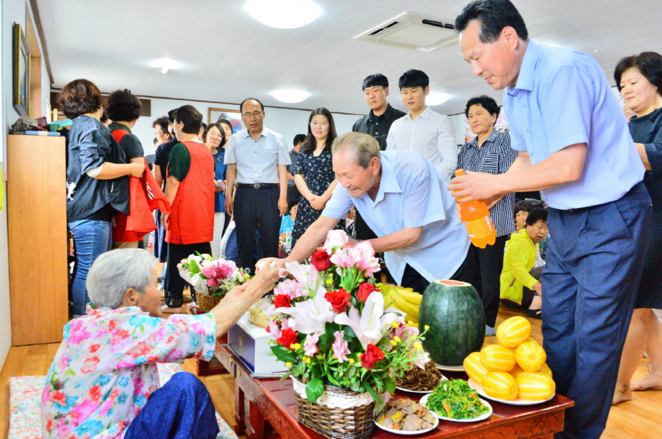 - 23일 적성면 지북마을 내촌댁 조점례 할머니가 100세를 맞아 어르신에 대한 생신상 차림을 준비했다.올해 100세를 맞은 조점례 할머니의 생신상차림 행사는 순창군여성단체협의회 주관으로 꽃바구니와 천수패 전달, 생신상 차림, 가족생일상기념촬영 후 가족과 주민들이 함께 식사를 하며 어르신의 건강을 기원했다. -2018년 6월 23일-