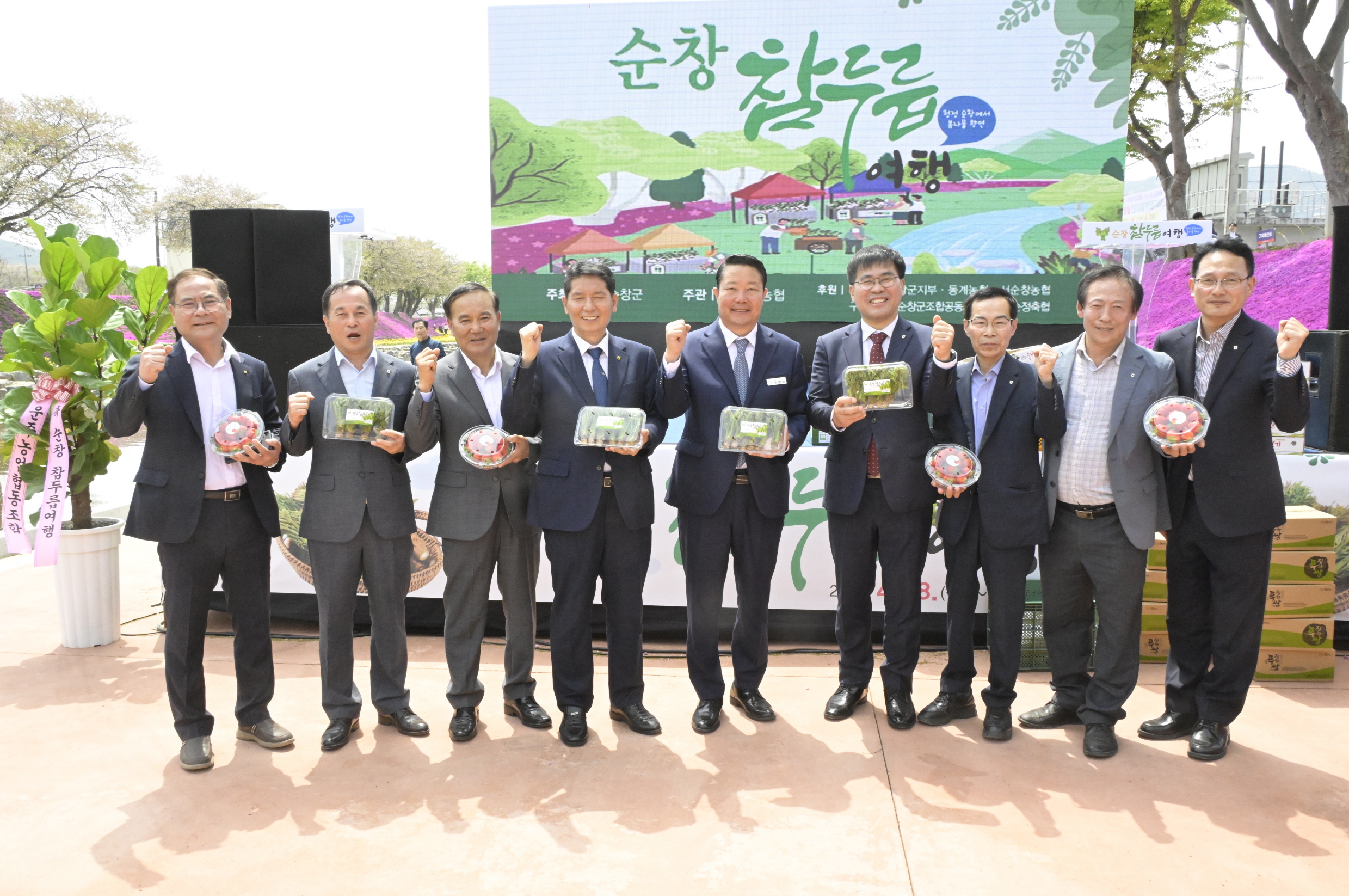- 18일부터 19일까지 양지천 일원에서 성황리에 개최됐다. 꽃잔디, 수선화, 튤립이 만개한 생태하천 양지천을 배경으로 열린 이번 축제는 참두릅을 테마로 한 먹거리와 다채로운 체험, 문화공연이 어우러지며 방문객들의 발길을 사로잡았다. 축제는 순창군이 주최하고 순창농협이 주관하였으며, 지역 농협(동계, 서순창, 구림)과 농협군지부, 조공법인, 축협이 후원하였고 30여 단체가 함께 참여해 순창의 봄나물을 전국에 알리는 계기가 됐다. -2025년 4월 18일-