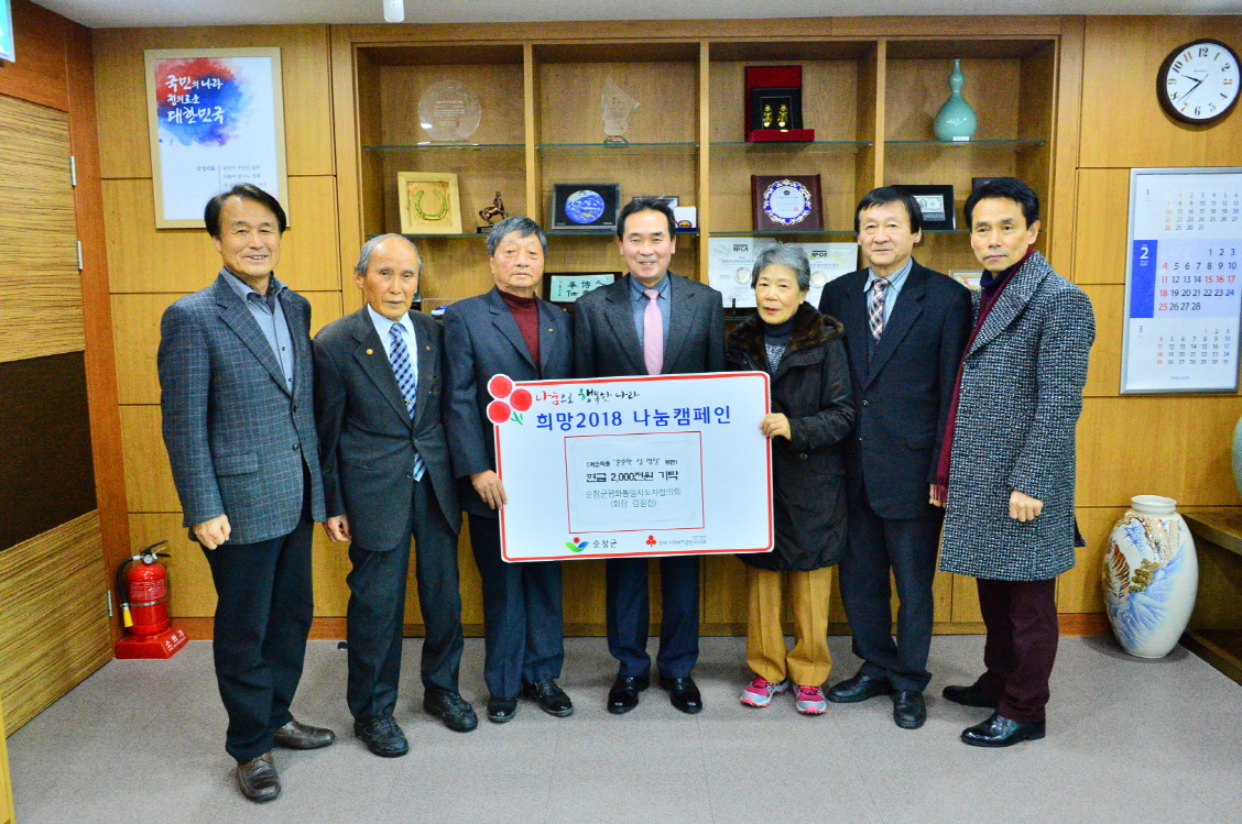- 설 명절을 앞둔 14일 평화통일지도자협의회 김길진 회장 및 회원들이 순창군청을 찾아 황숙주 군수에게 회비와 회원들이 십시일반으로 모은 200만원을 이웃돕기 성금으로 기탁했다. -2018년 2월 14일-