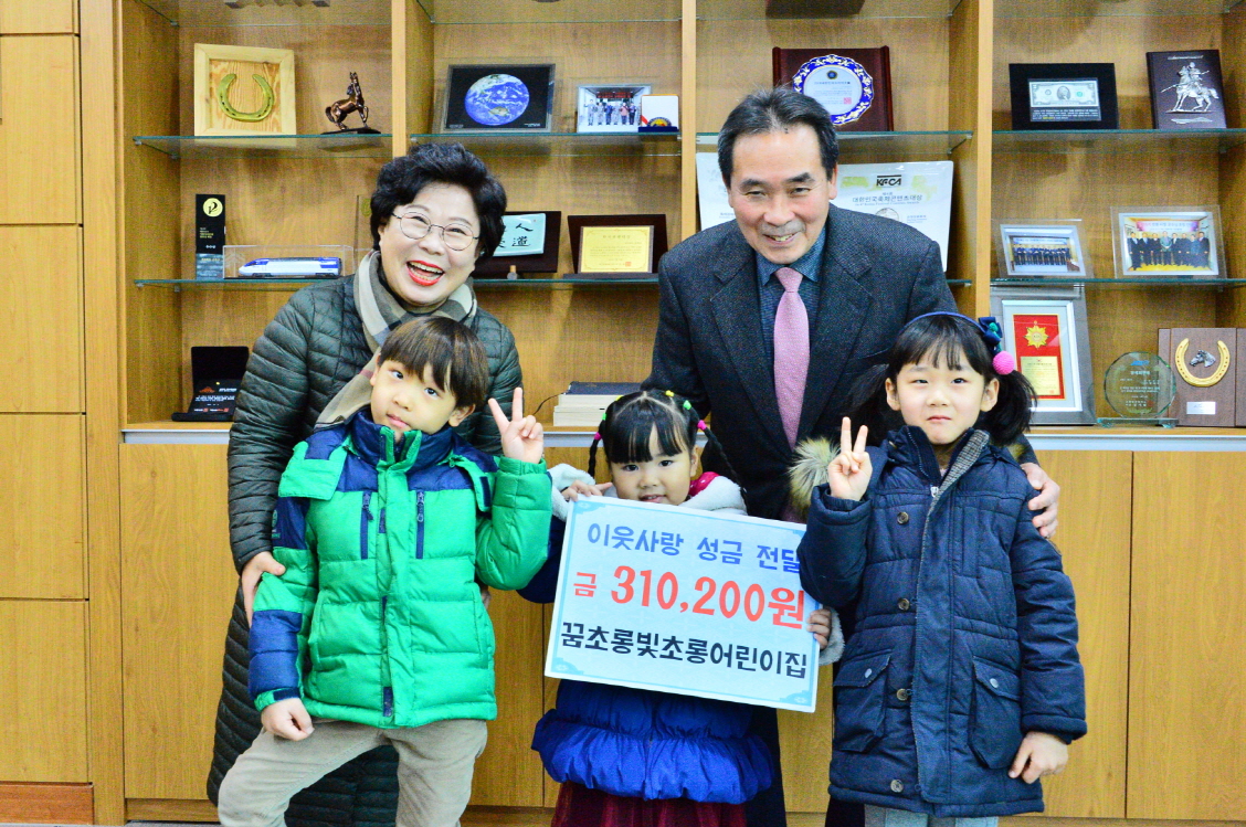 - 꿈초롱빛초롱어린이집(원장 우상임) 아이들이 14일 순창군청을 찾아 1년여 동안 고사리 손으로 모은 동전 31만 200원을 이웃사랑 성금으로 기탁했다. -2018년 2월 14일-