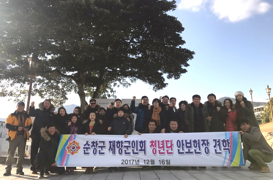 - 순창군 재향군인회(회장 최병학)은 16일 튼튼한 안보의식 고취를 위해 최병학 회장을 비롯 향군 청년회원과 자녀 등 50여명이 참여한 가운데 회문산 일원과 전남 여수의 전라좌수영 일대를 견학하였다. -2017년 12월 18일-