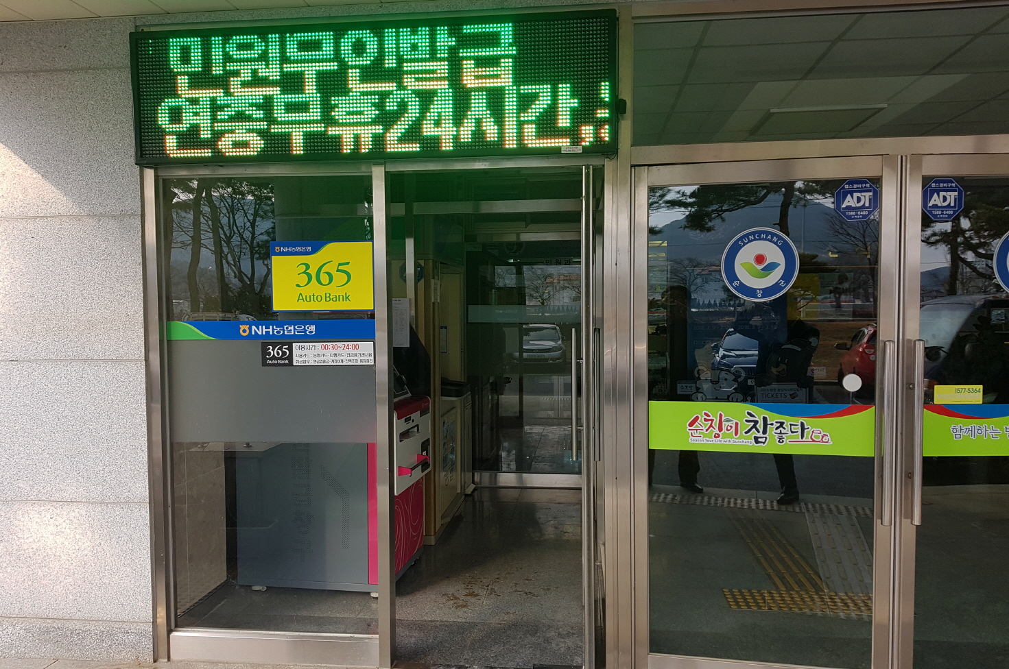 - 순창군청 민원실 앞 무인민원 발급기 앞에 야간에도 식별이 가능한 LED전광판을 설치하였다.무인민원발급기는 각종 민원서류를 공휴일 관계없이 24시간 발급이 가능하도록 개방되어 있으며 총 78종의 민원서류 발급이 가능하다. -2017년 12월 18일-